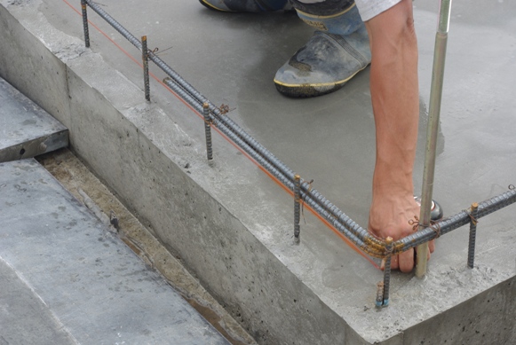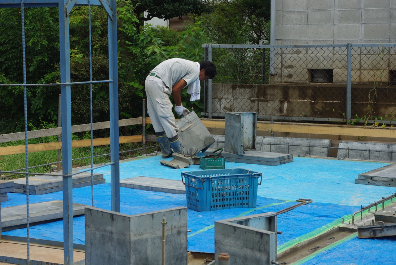 コンクリートバイブレーターを使って、型枠内のコンクリートを締め固めていきます。