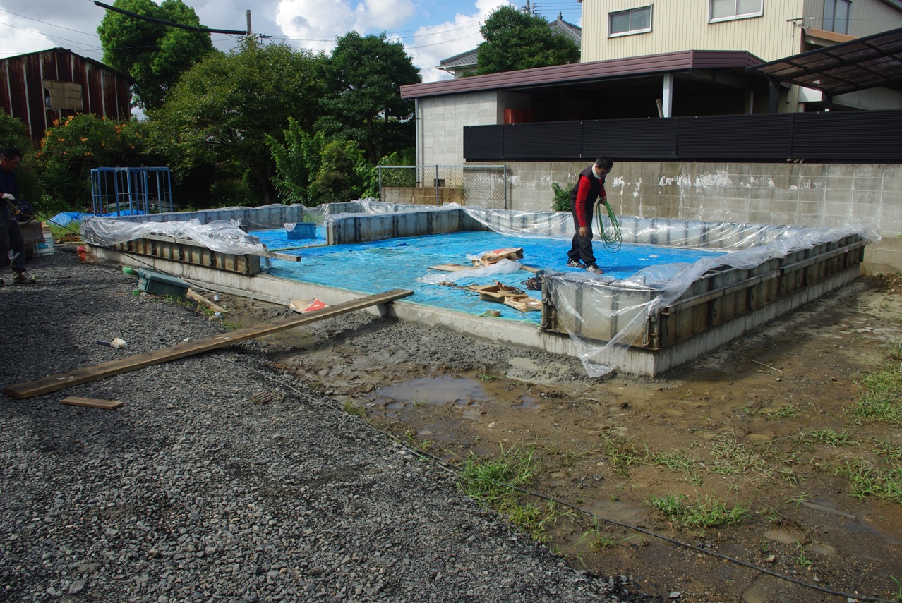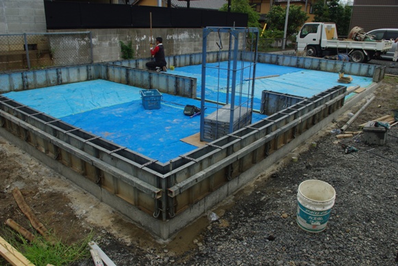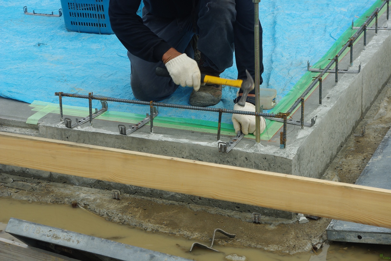 この後、明後日に立ち上がりの型枠を撤去して、基礎の完成です。