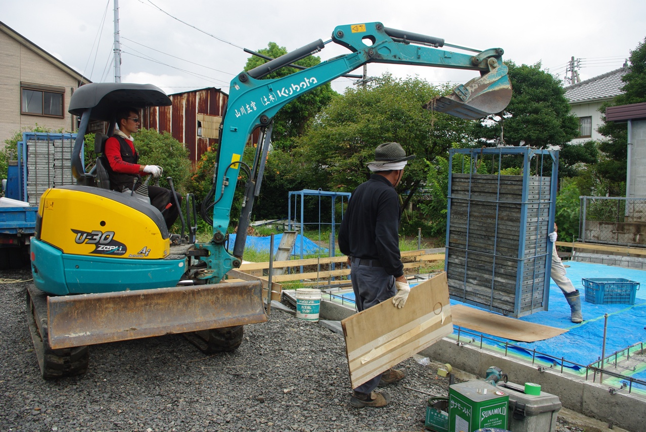 本日はかなり早朝から基礎工事業者の方々がみえて、私が顔を出したときには既に型枠が全て取り外されていました。