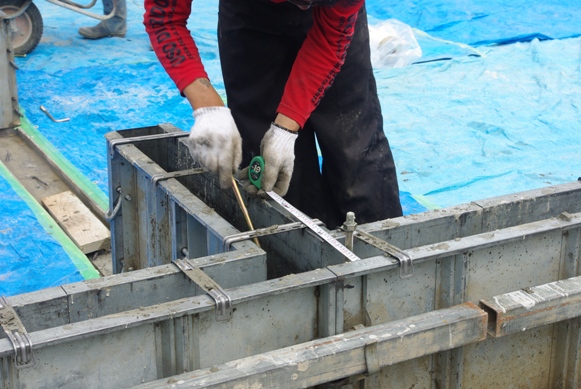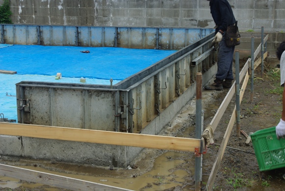 早朝に取り外した型枠パネルを、外枠の型枠として再度使用します。