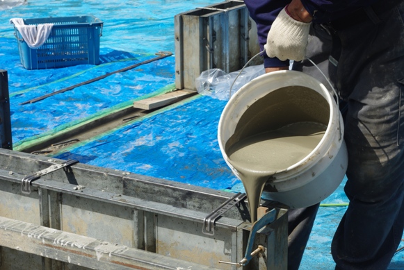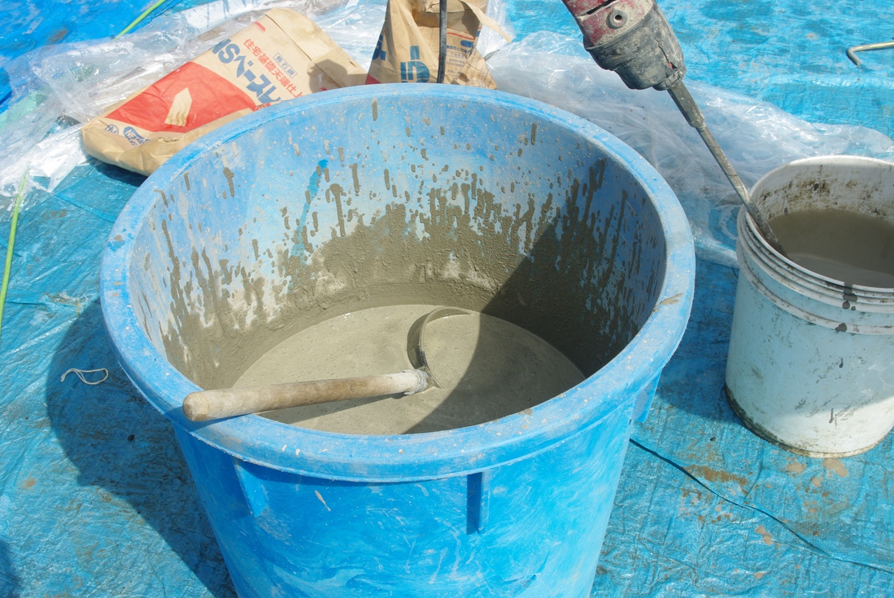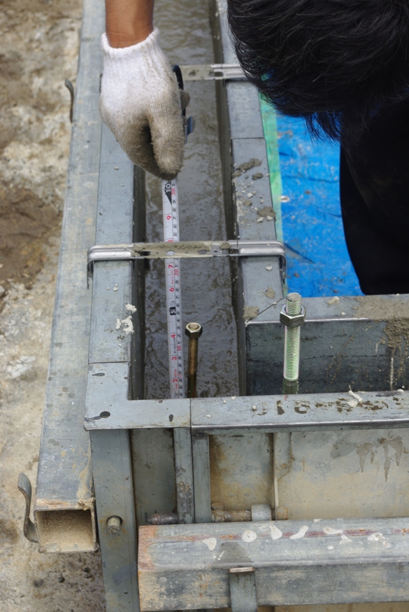 このベースレベラー(モルタル)を型枠に流し込みます。