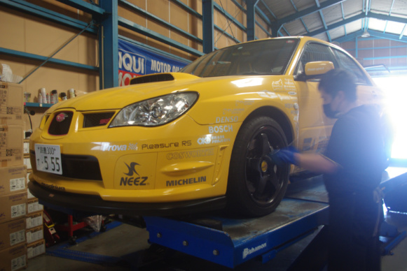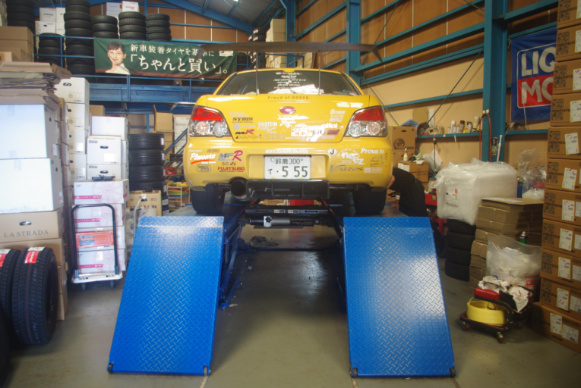 そして前回訪れた時にもお世話になりました、リフトの上に愛車を載せました。