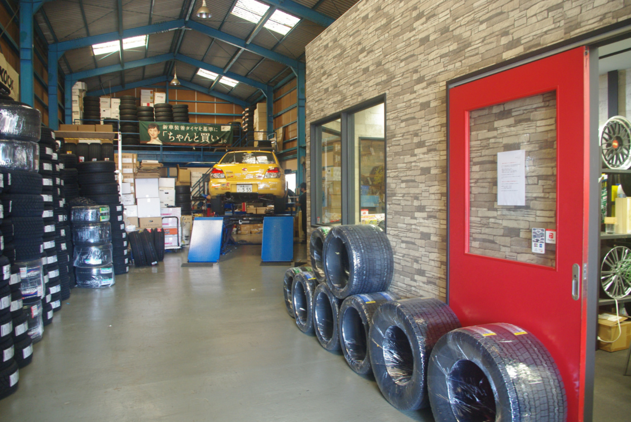 従業員の方にキーをお渡しすると、早速所狭しとタイヤが並んでいる倉庫内に愛車を移動して下さいました。