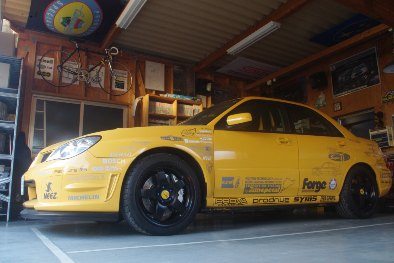 そこでサイズの違いを細部まで検討しました結果、ホイールの純正サイズ幅8.5Jは245/40でも適性サイズですし、何よりも現在のSUBARU WRX STI の標準純正タイヤサイズは245/40 18インチであることからも、まったく問題が無いという結論に達しましたので、導入することに決定しました。