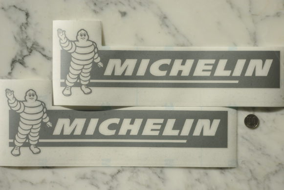 そしてヤフオクとeBayの両者の画像を入念に比べてチェックしました結果、2つのMICHELIN vinyl bannerは程度の差こそあれまったく同じものであると確信しました。