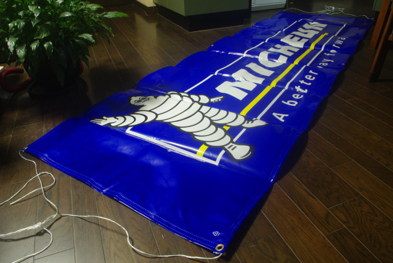 この大きさもさることながら、なんとも実に立派で美しいMICHELIN vinyl banner ではありませんか。