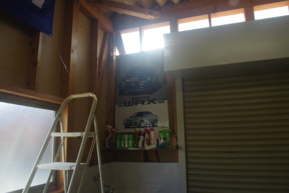その後自宅の私の部屋に飾っておりましたが、このガレージを建て水回りの設備が整った頃にここに掲げていました。