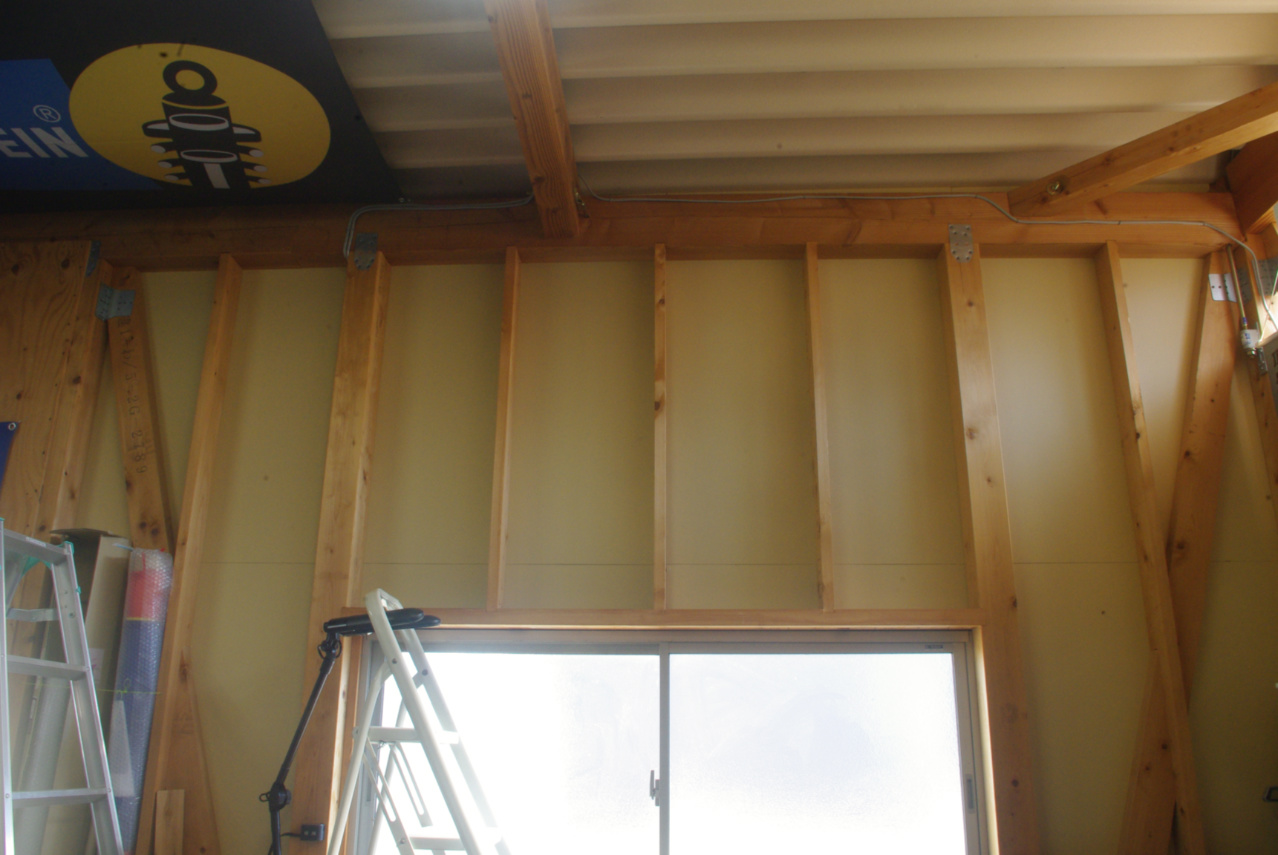因みに柱と間柱の間隔が、このダンボールの台紙の幅に丁度良いサイズであることは、予め計測し確認してありました。