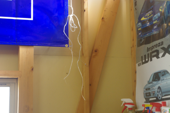 何故ならばこのままですと、MICHELIN vinyl bannerを掲示すると、幅が3メートルありますので右端から20㎝ほどが、掛け軸に重なってしまうからです。