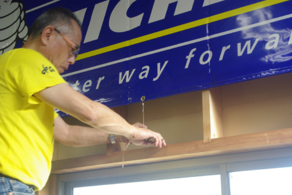 丁度MICHELIN vinyl banner を貼ったばかりですが、その下の目立つ場所にということで、ここしか無いとこのバナーを貼る以前から決めていました。