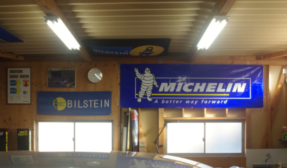 つまり1990年、2000年代のSUBARU WRC黄金時代を知るアールエーアール鈴鹿にとっては、このMICHLIN bannerのデザインこそが、もっともMICHELINらしいMICHELINであるということに尽きるのです。