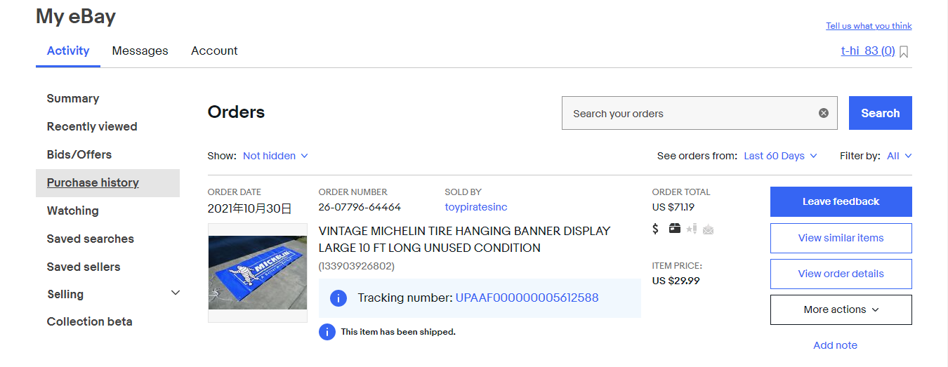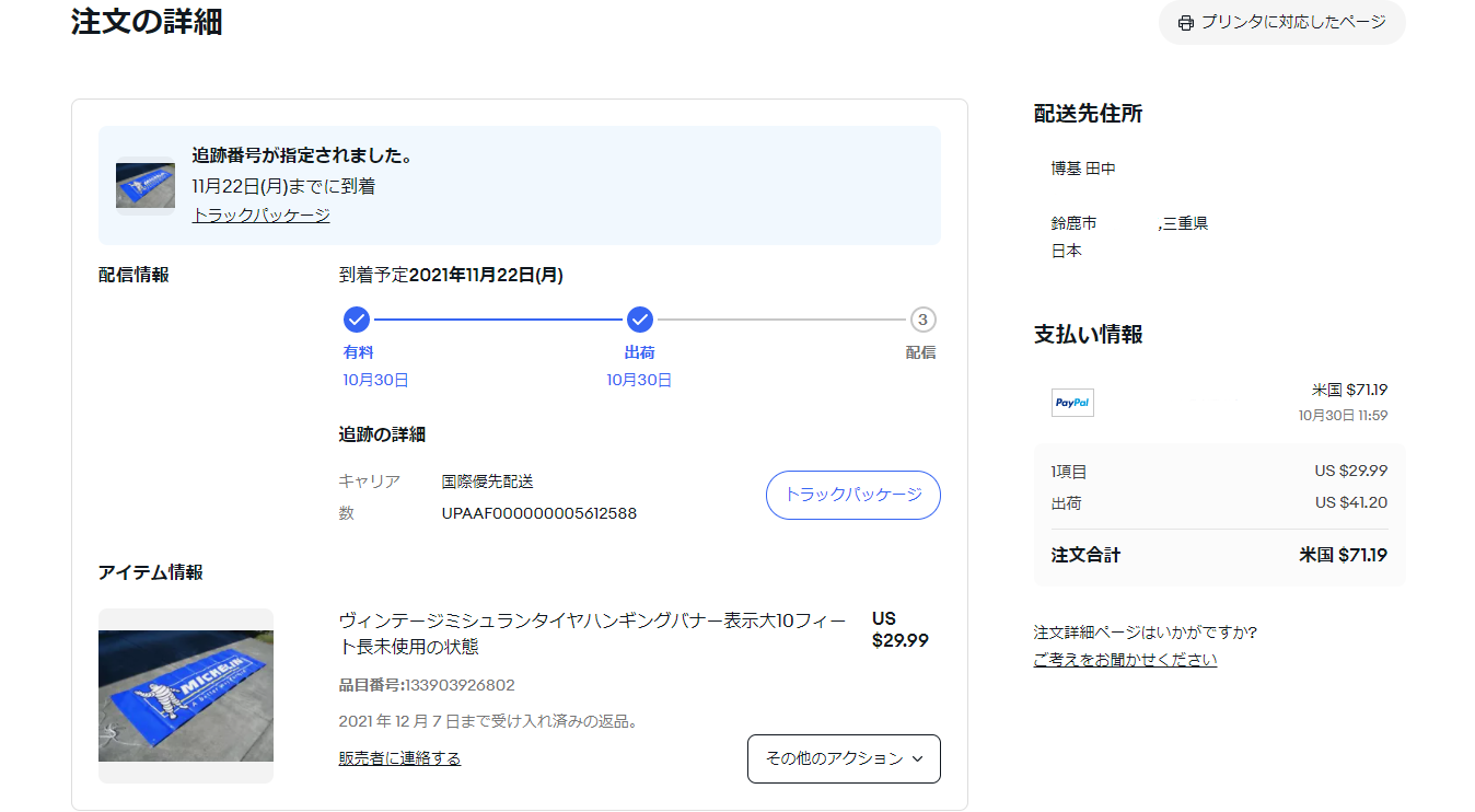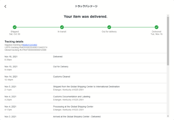 到着しました直後にeBayサイトのトラックパッケージを確認しました。