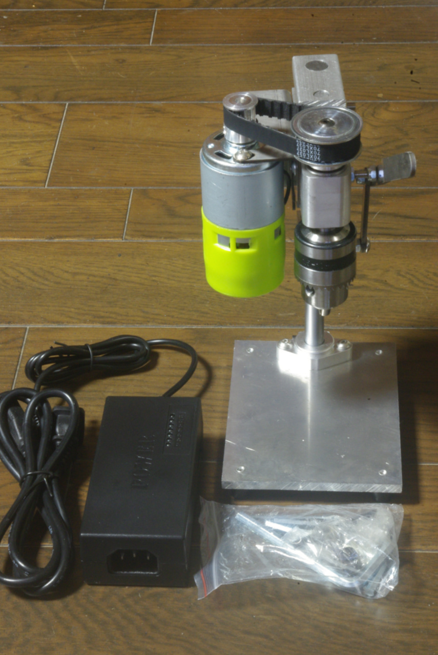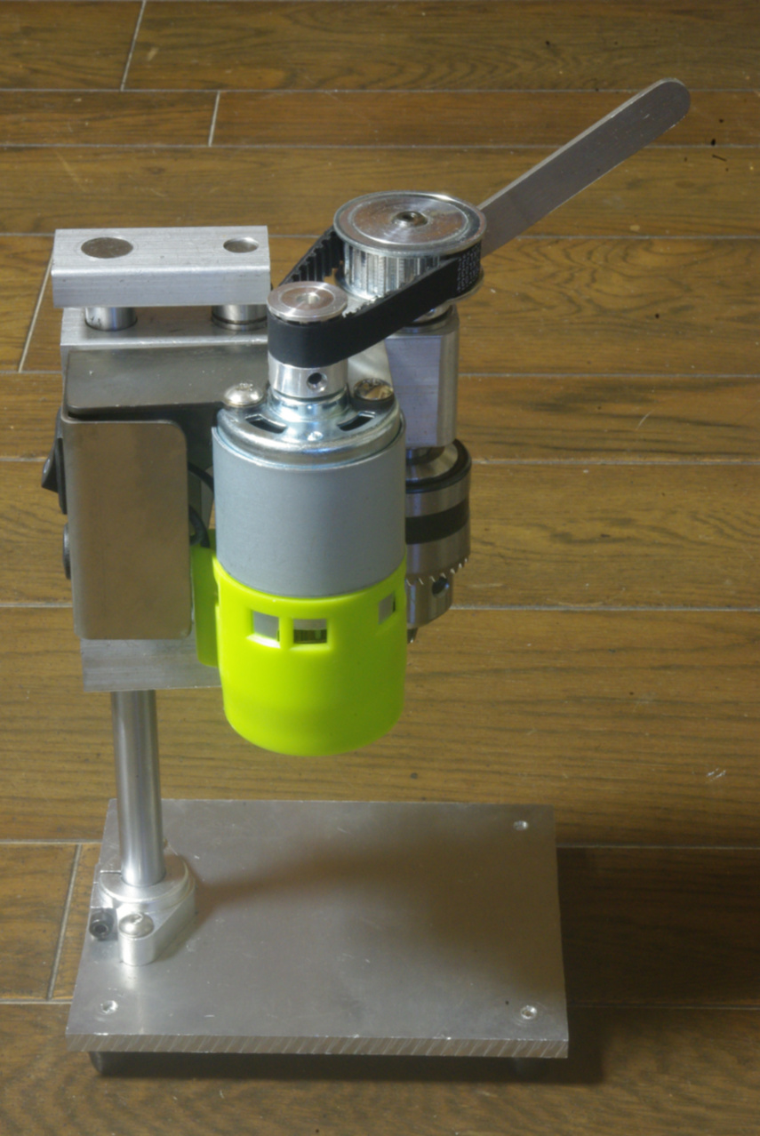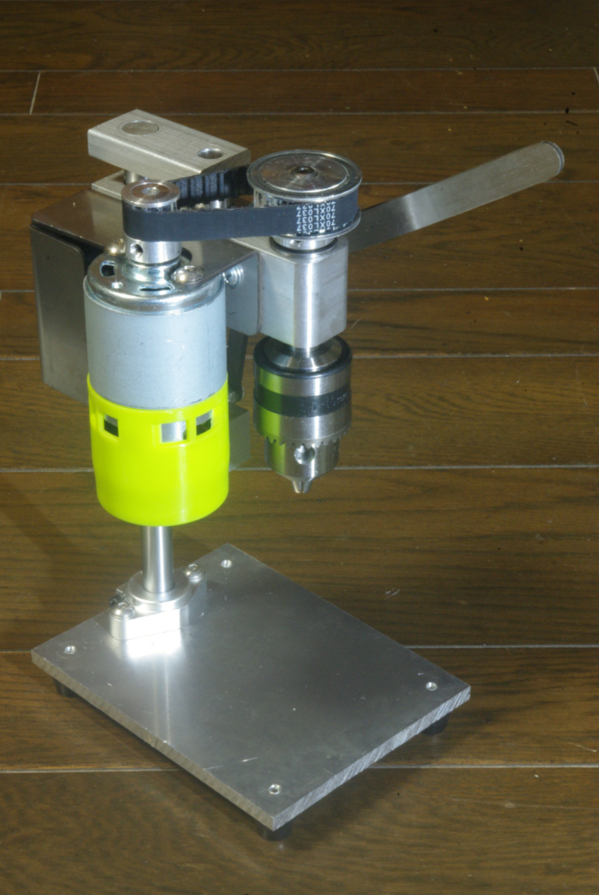 見たところこのコグトベルトもモーター、ドリルチャックも一般的な市販品ではないかと考えられます。