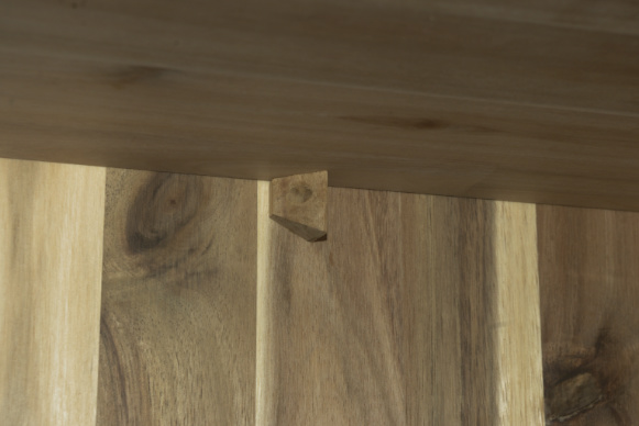そしてご覧のように桁足は棚板の端から約10㎜程度控えた位置で組み合わせています。