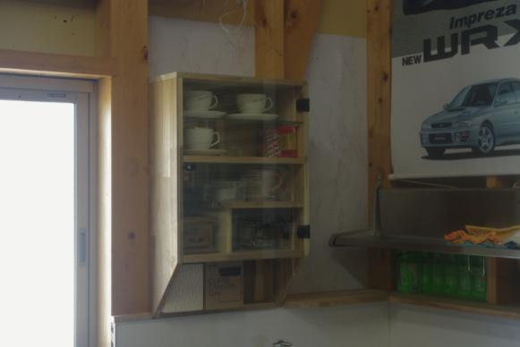 言い換えればこの片棚の製作は食器棚の側に、その後造付け棚を設けたことと決して無縁では無いということですが…。