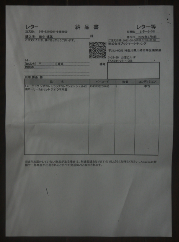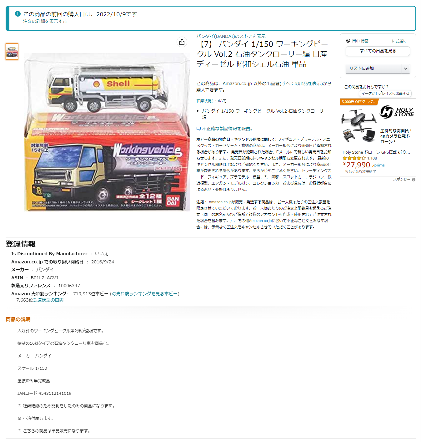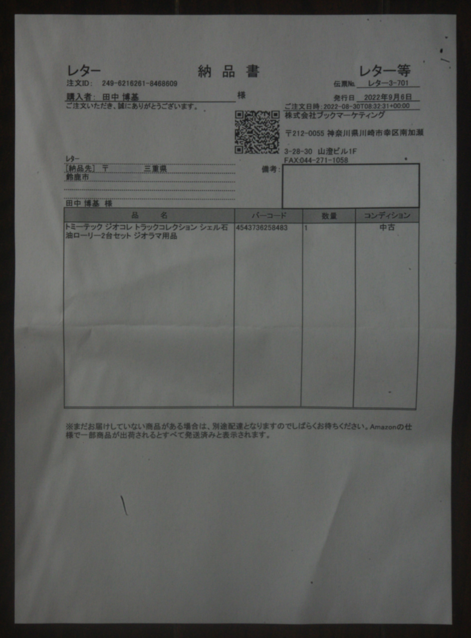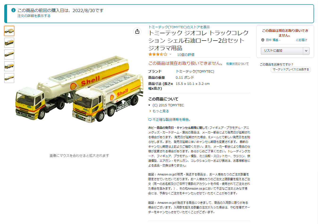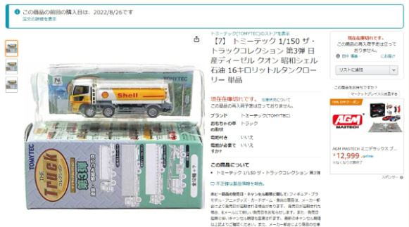 すると上記に掲載しましたトミーテック 日産ディゼール クオン 昭和シェル石油 16キロリットル タンクローリーが届きましたその翌日に、なんとこんなすごい出品物をAmazonで見つけてしまいました。