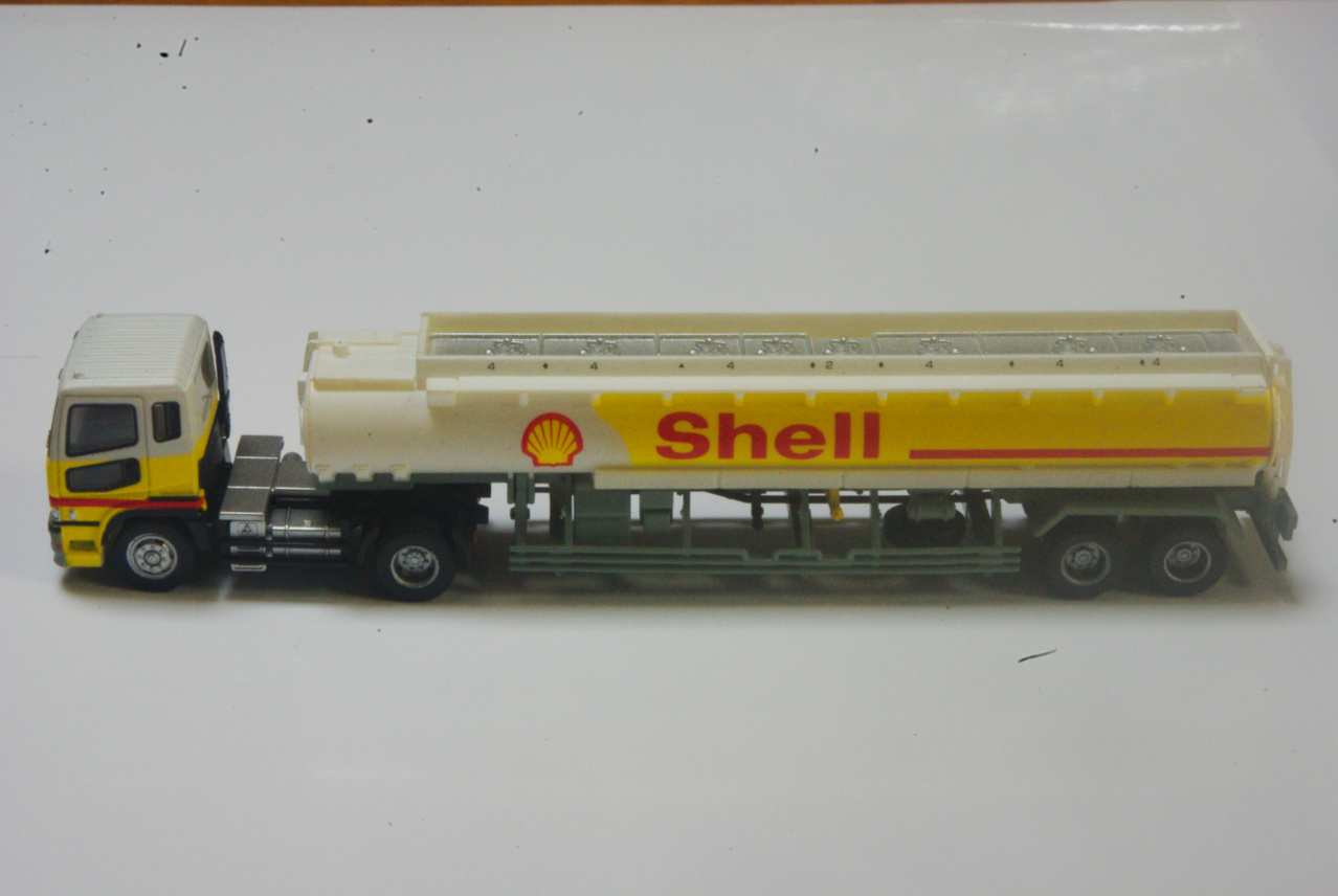 この日産ディゼール クオン 昭和シェル石油 16キロリットル タンクローリーは、後にUD トラックスに移行しますが、このモデルのフロントグリルのオーナメントは日産ディゼール クオンのオーナメントが付いています。