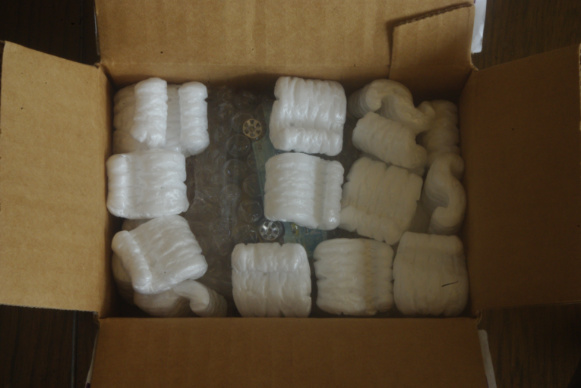 封書で届きましたが、中身はこのようにしっかりとパッケージをダンボールで補強しビニール袋に包み込むようにとても合理的な包装が施されていました。