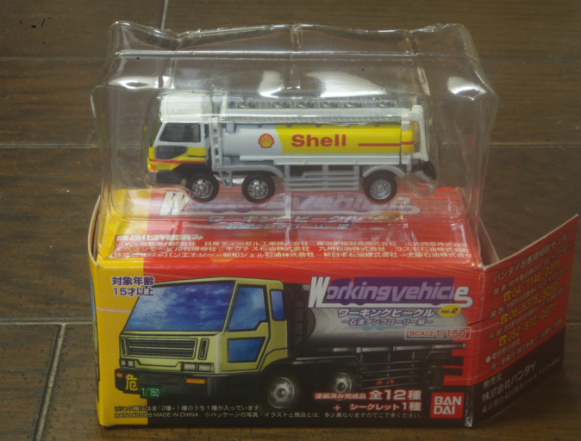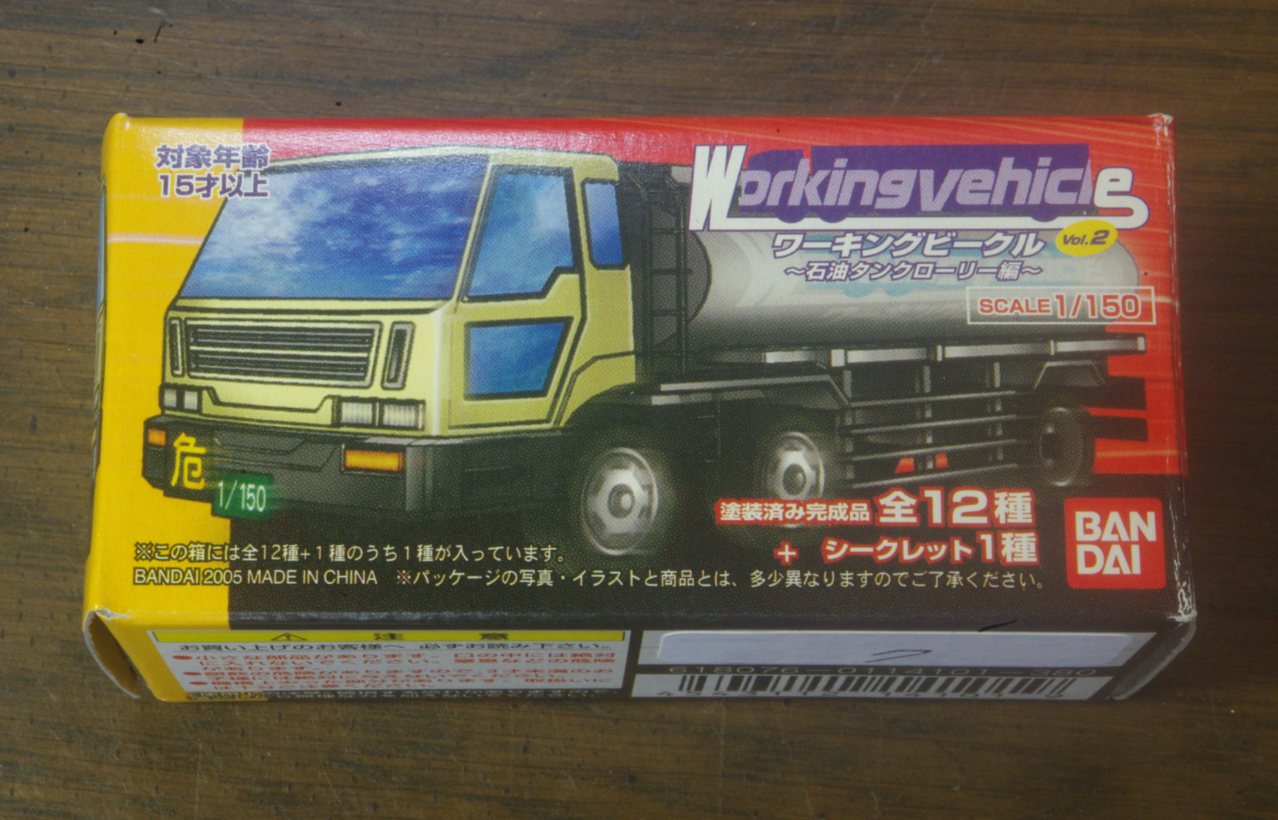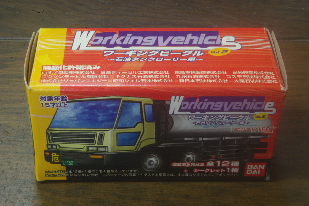 何故ならこの商品はBANDAI 1/150 ワーキングビークル Vol.2 石油タンクローリー編とパッケージにあるだけで、パッケージに表示されている12種類 + 1種類(シークレット)の内どれが入っているかは、中身の商品を取り出さない限り判りません。
