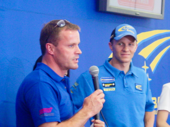 そしてスバル応援団サービスとして、現地のサービスパークに設けられたスバルチームサービステントにおいて歓迎会が催され立食パーティー形式のレセプションにはSWRTの所属ドライバーやコドライバーたちも参加し、選手インタビューやサイン会も実施されました。