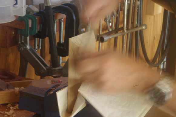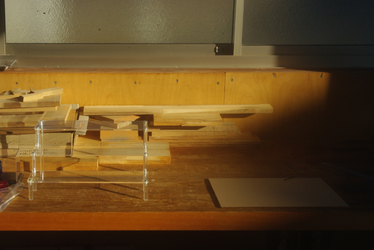 この作業はあくまでも経験と勘だけで行いますので、当初計測しました通りに各部(棚の長さと足の高さ)の寸法が出るとは限りませんので、後に修正することは予め想定済みです。