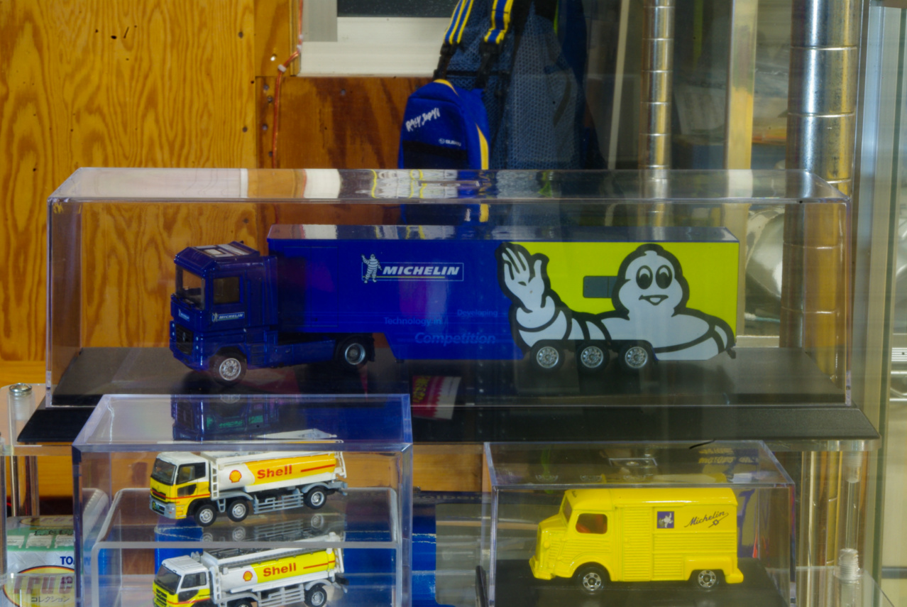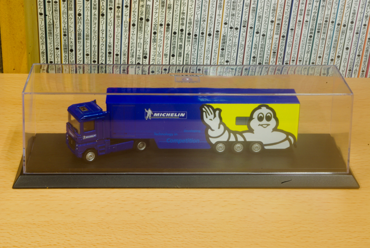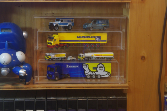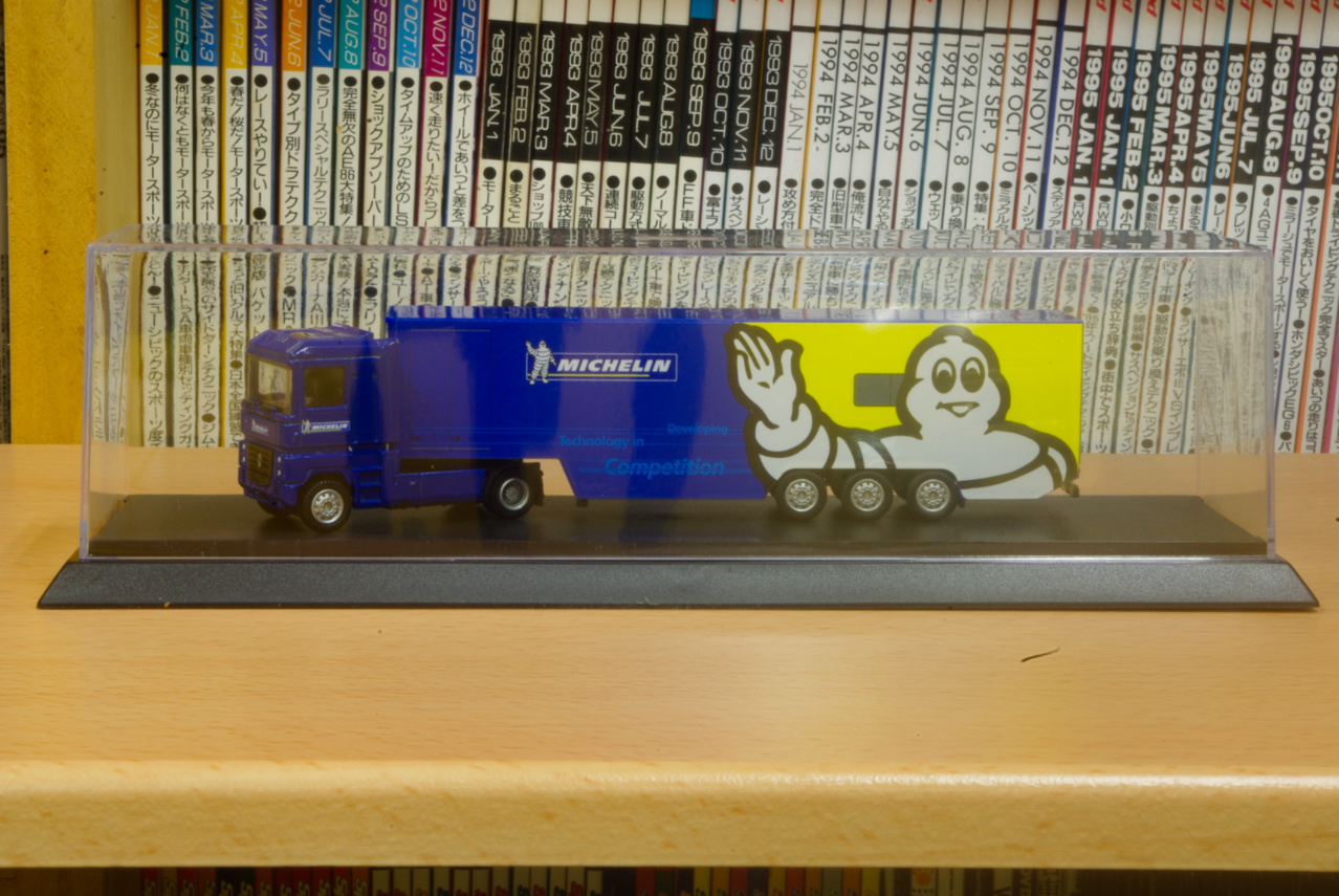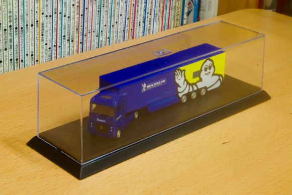 そしてそのスペースにディスプレイスタンドの一段目に置いていましたMICHELIN MOTOR SPORTS TRANSPORTER Bibandam TOMIKA を収めました。