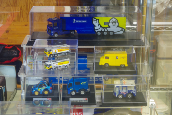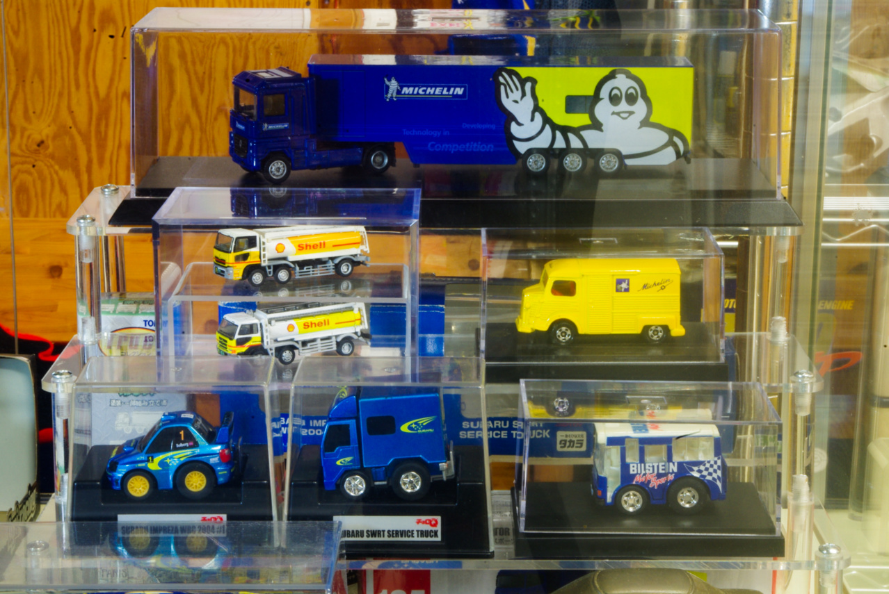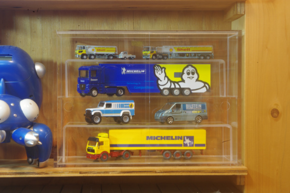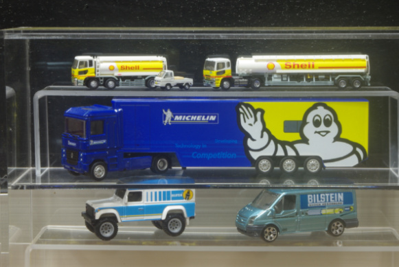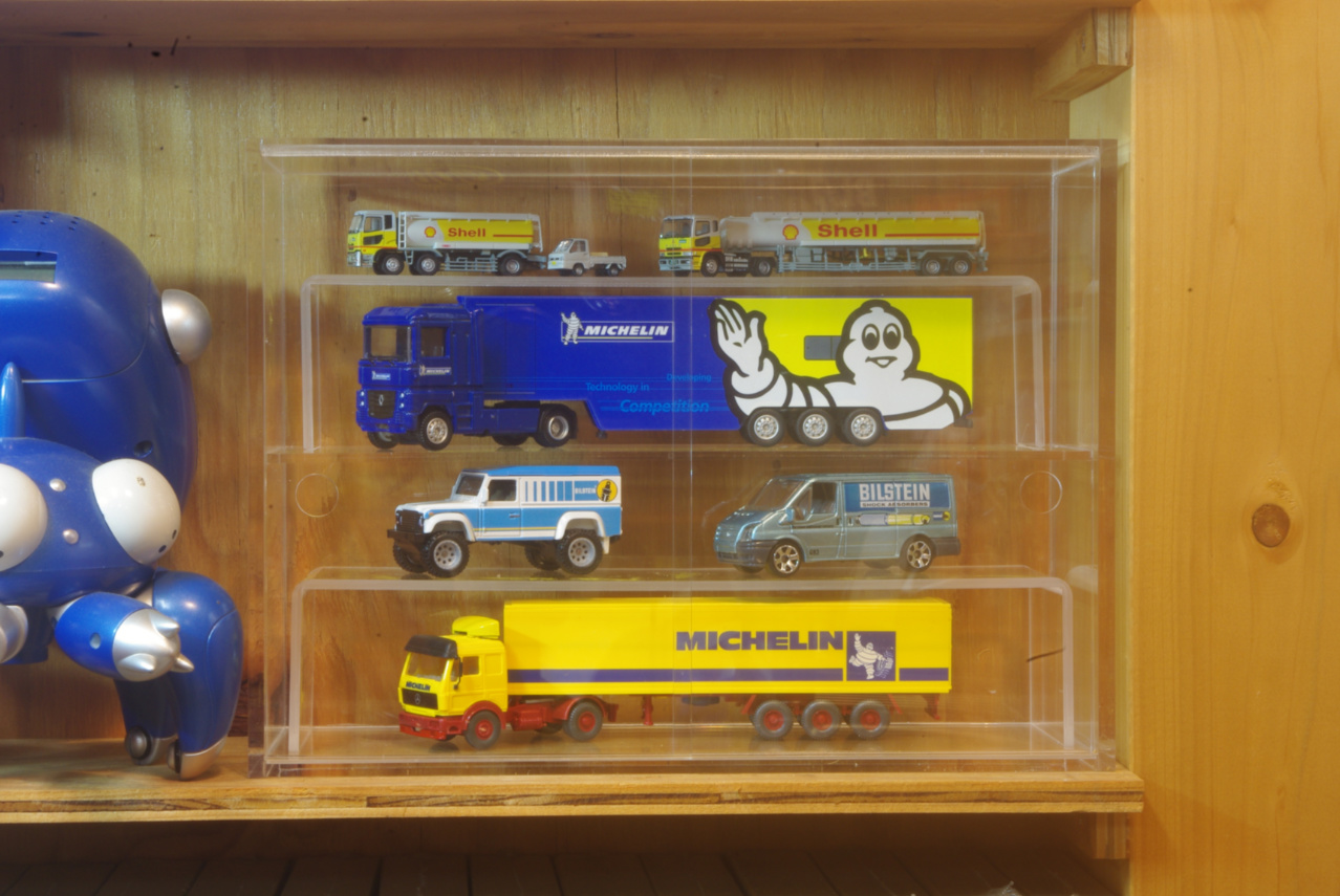 そしてそのスペースにディスプレイスタンドの一段目に置いていましたMICHELIN MOTOR SPORTS TRANSPORTER Bibandam TOMIKA を収めました。