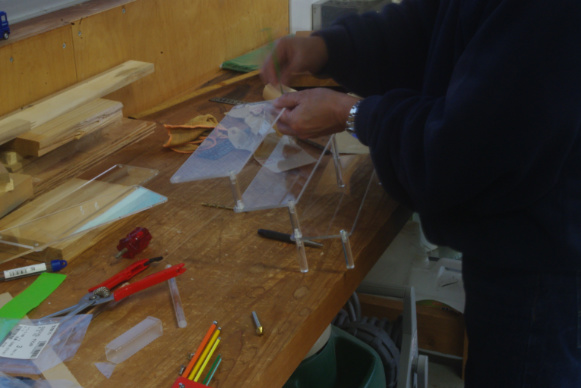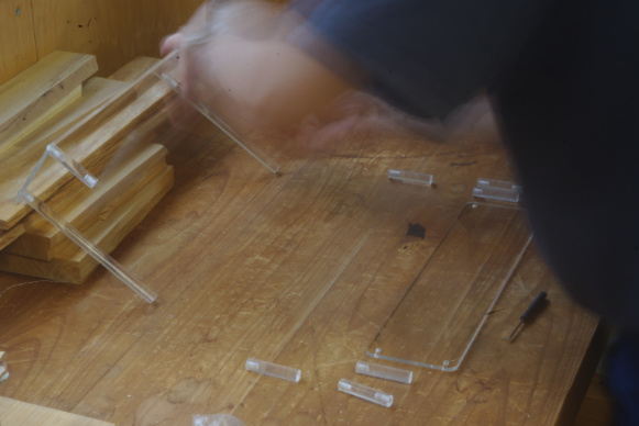 ネジ穴の位置や皿ネジの枕頭の状態を確かめながら組み立てました。