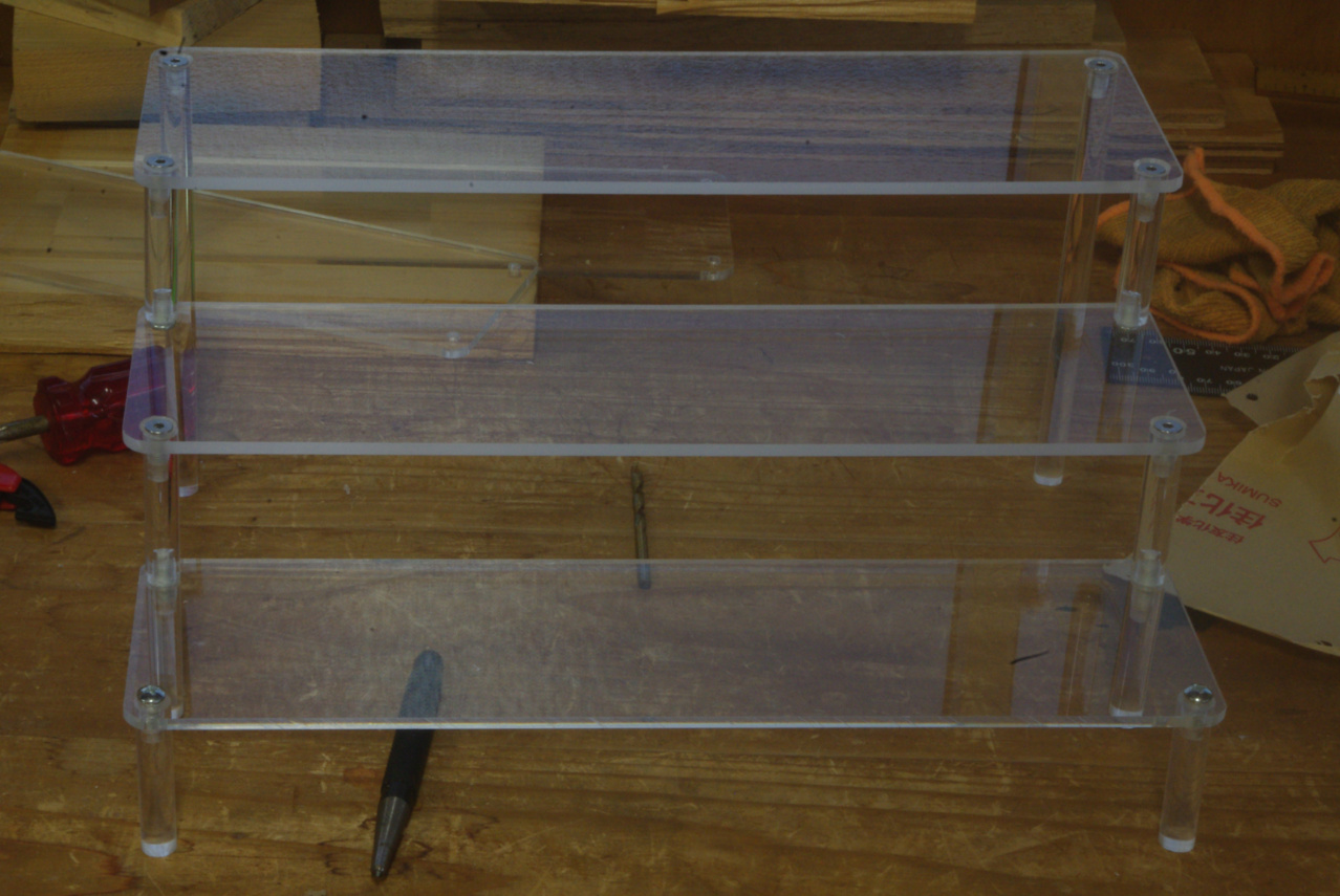 いずれにしましても、ほぼ想像通りの結果が得られましたので、このアクリル棚の出来映えには充分満足しています。
