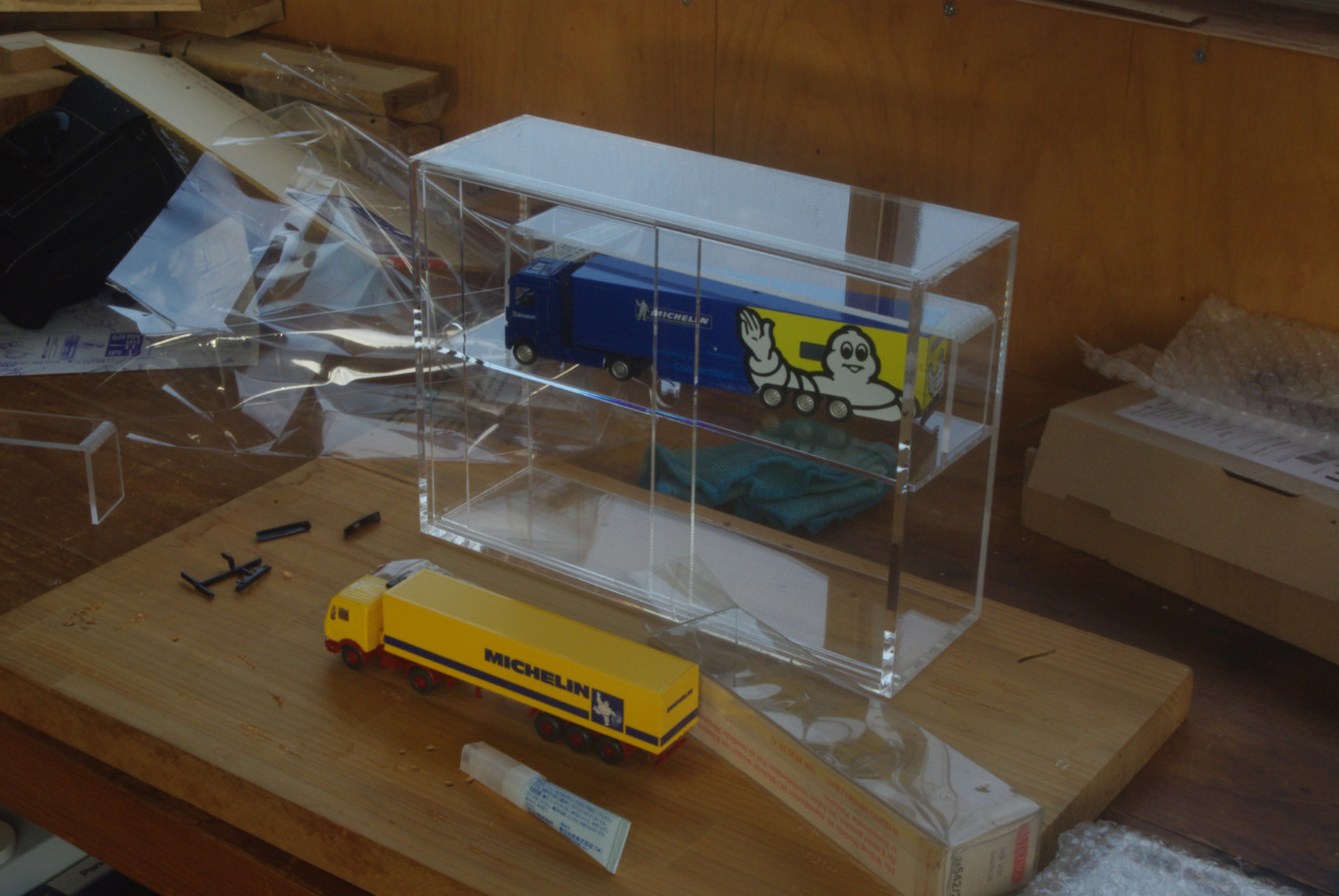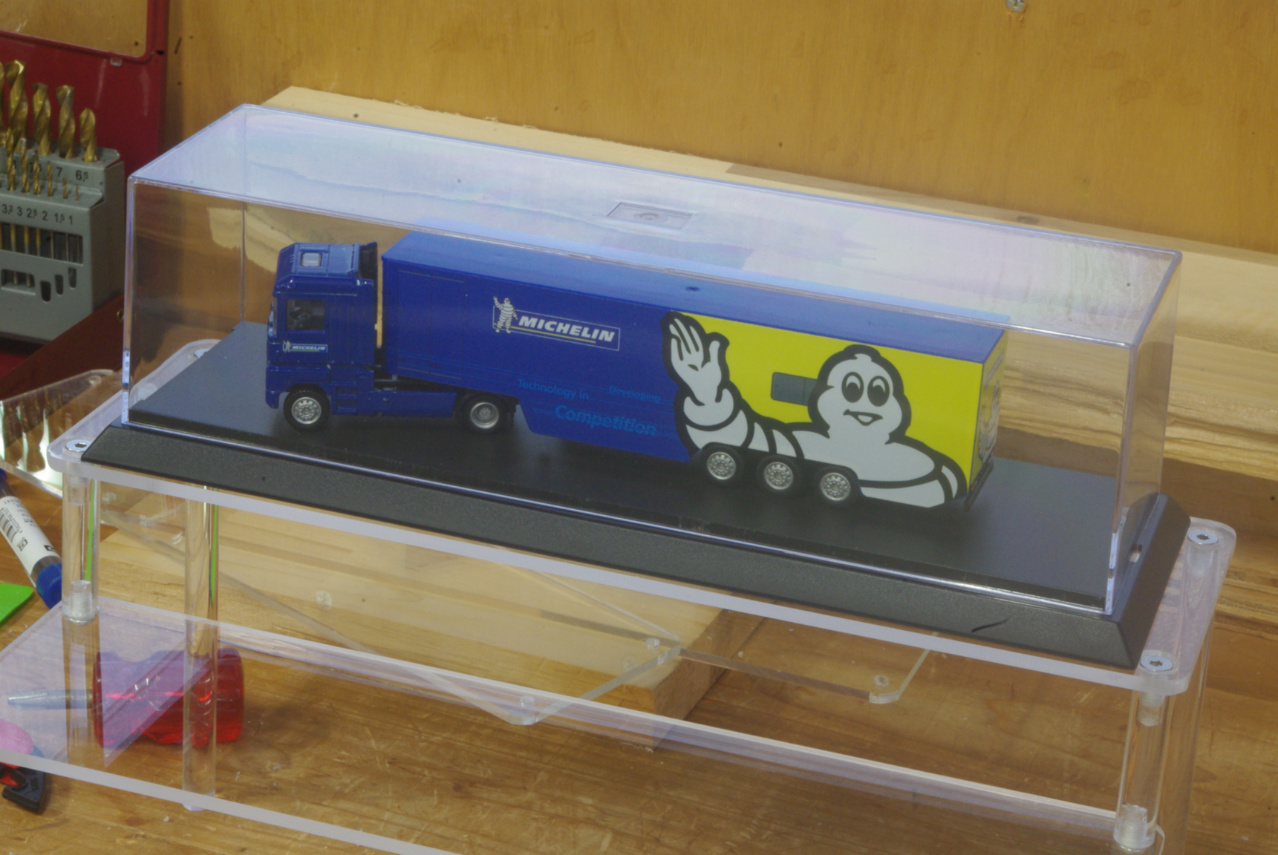 これでMajorette Eligor Ho 1/87 Camion Remorque Centrale Renault Magnum 440 Cv Michelin展示用のケースがピッタリ載ることが確認出来ました。