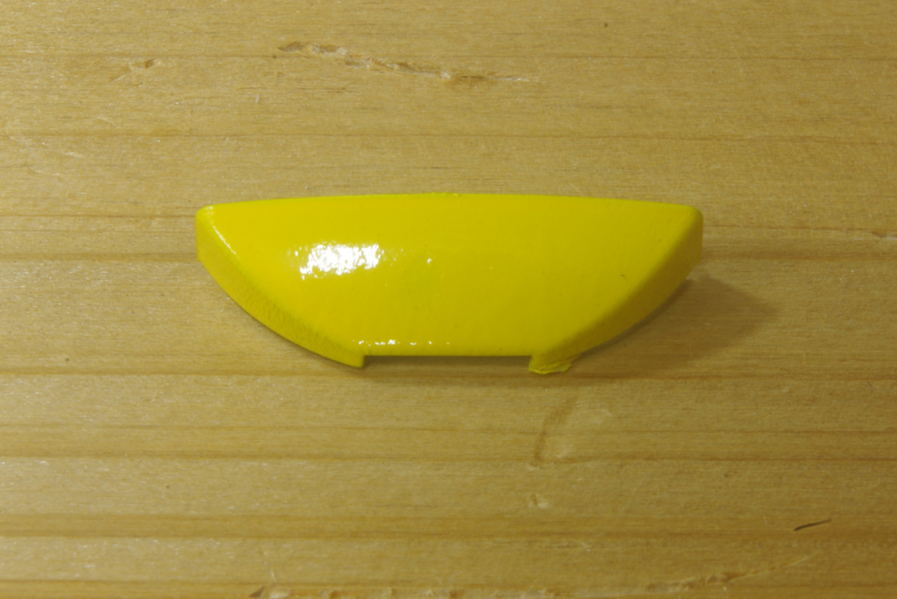 2つとも丁度これも昔使用したスプレー塗料が余っていましたので、ルーフスポイラーは黄色にフロントアンダースポイラーは赤色に塗装することにしました。