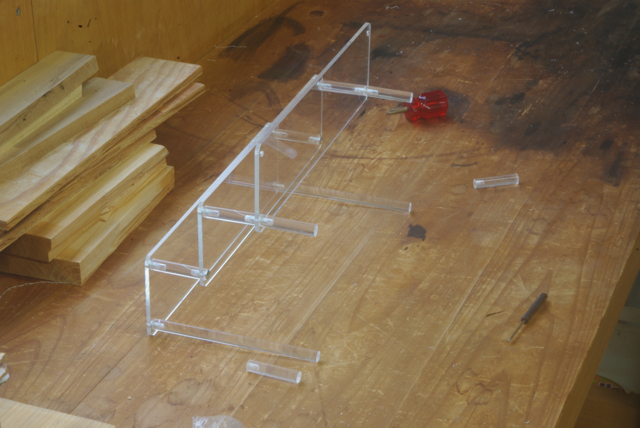 一方こちらは、昨日アクリル板を使いまして自作しましたスタンドのひとつですが、高さが足りなくてディスプレイケースには使えなかったものです。