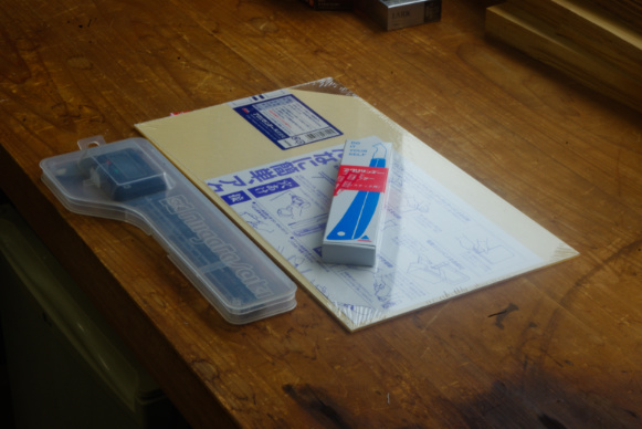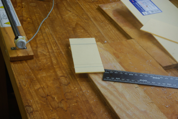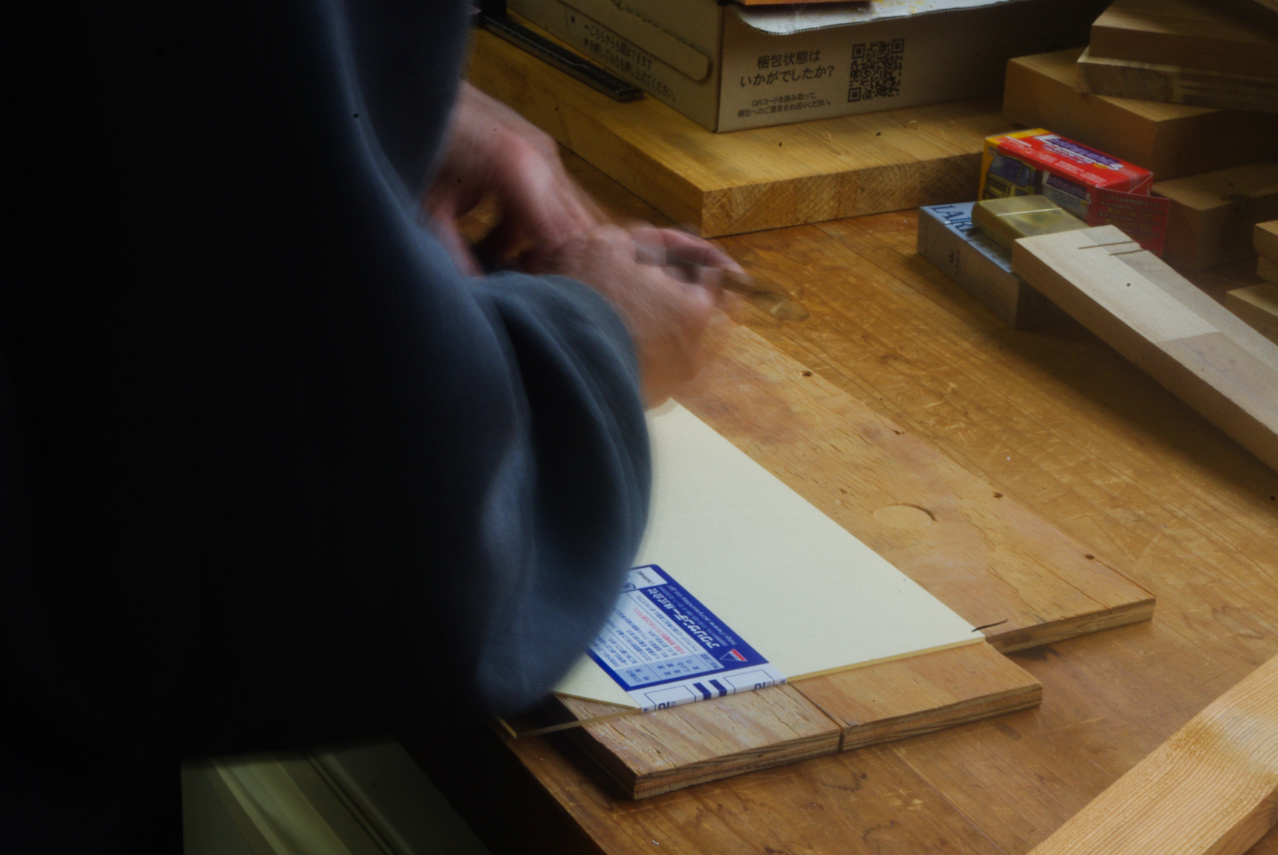 そしてさらに保護用ペーパーに折曲げ位置を正確にエンピツで線引きしています。