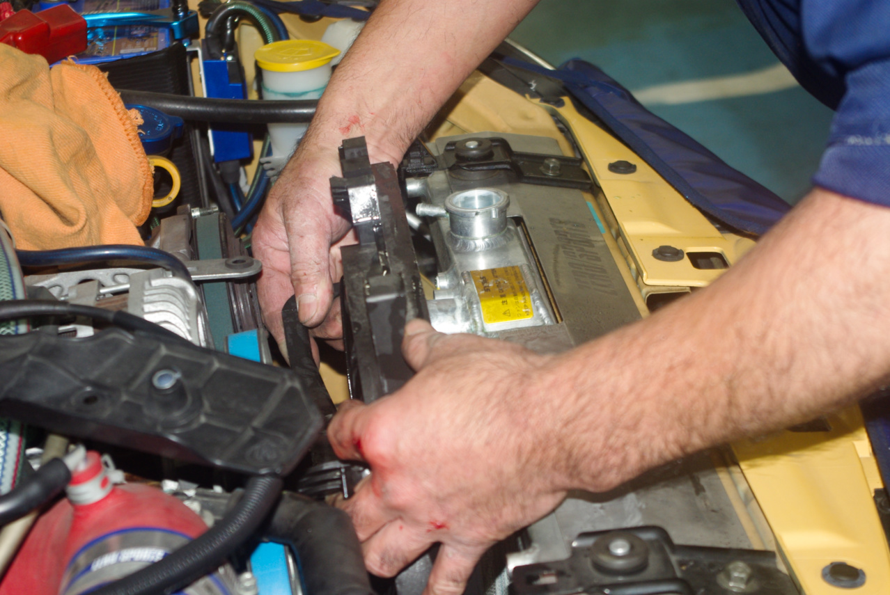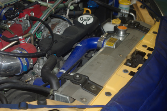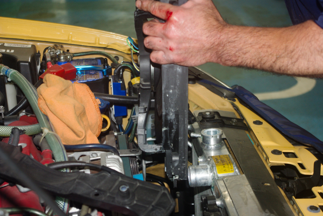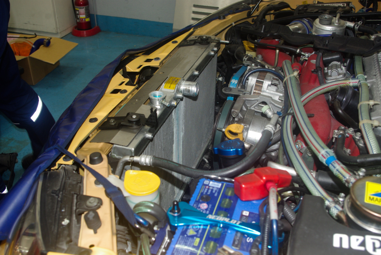 要するに純正ラジエターよりも厚みのあるオールアルミラジエターの所為で、この隙間に余裕が無い分取り外す箇所も増えてしまったようです。