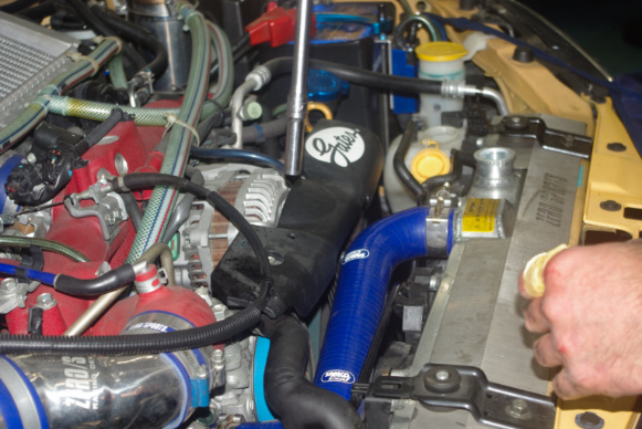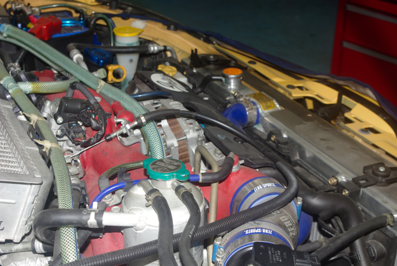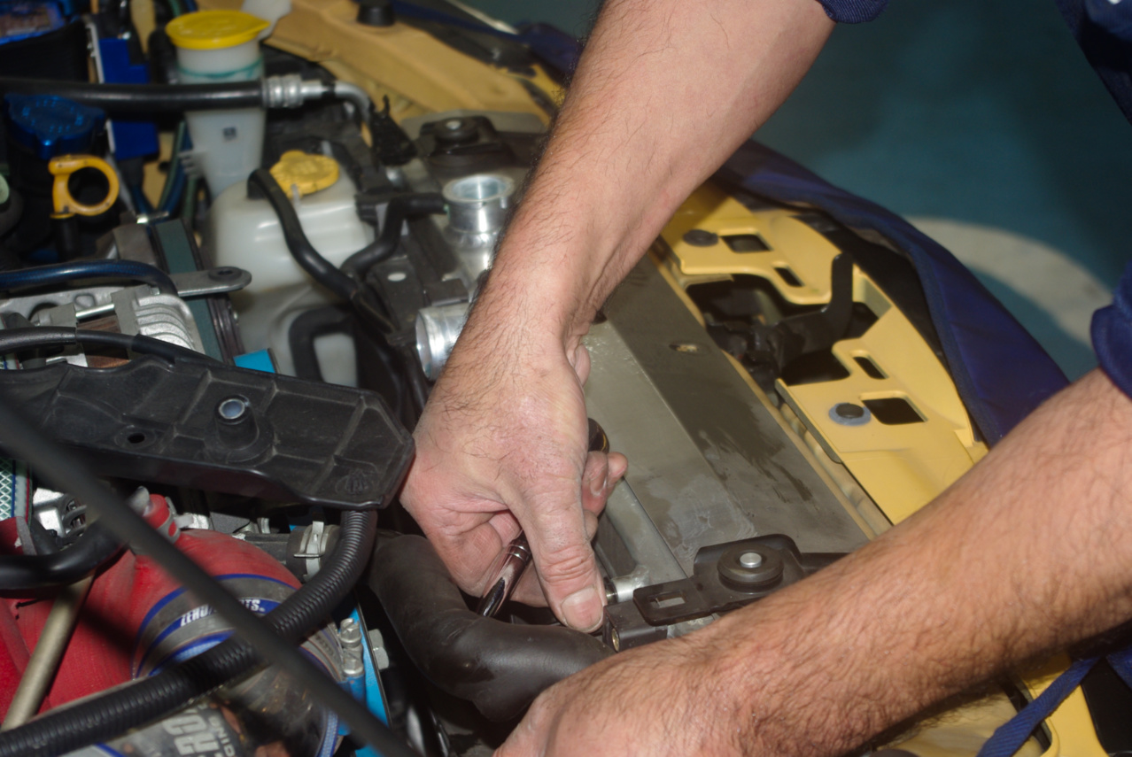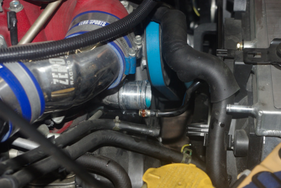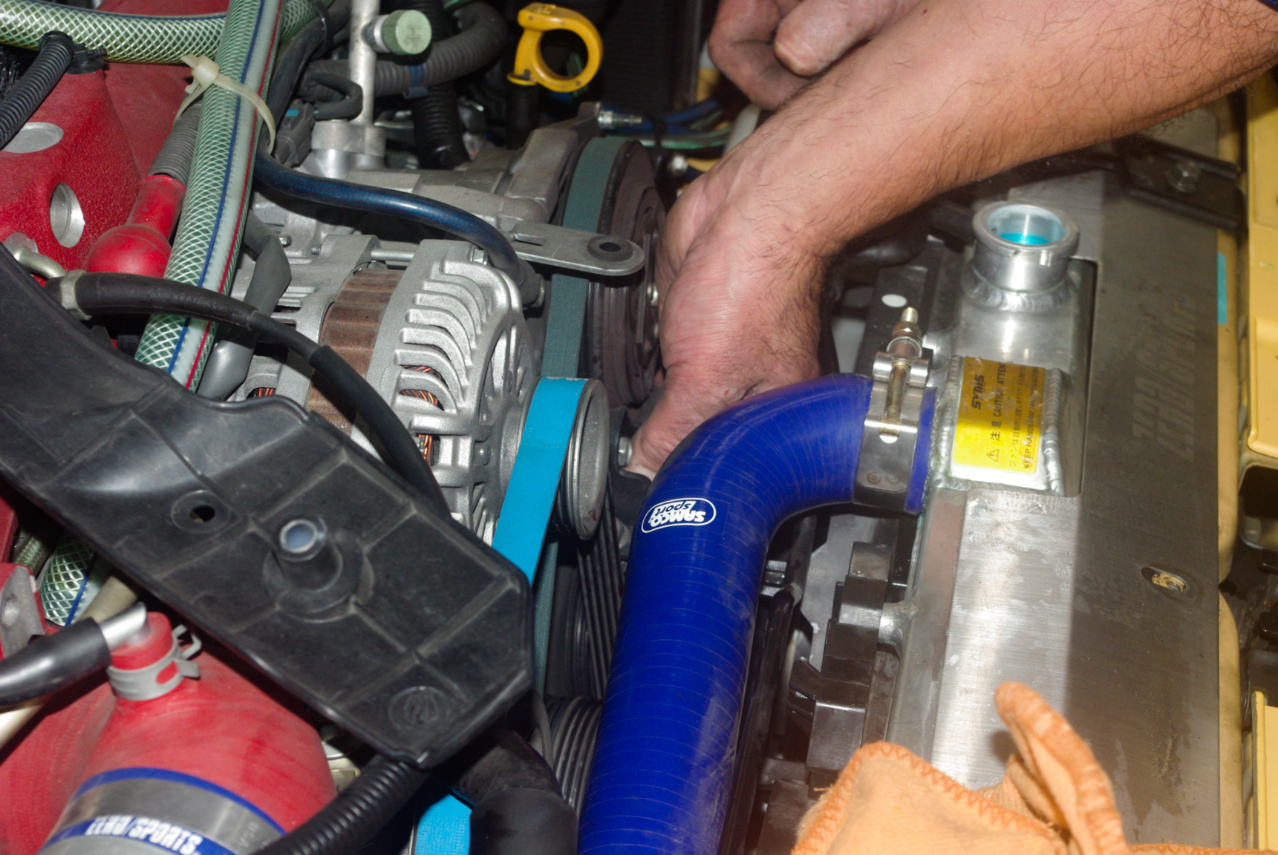 エアーインテークダクトの次はラジエターのアッパーホースを取り外す必要があります。