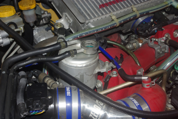 リザーブタンクとその配管も元に戻しまして固定しています。