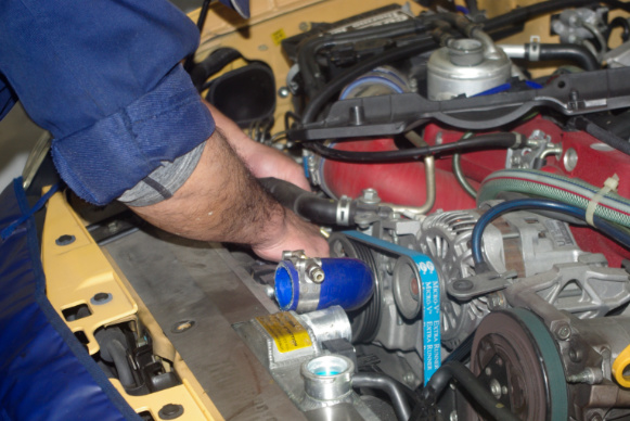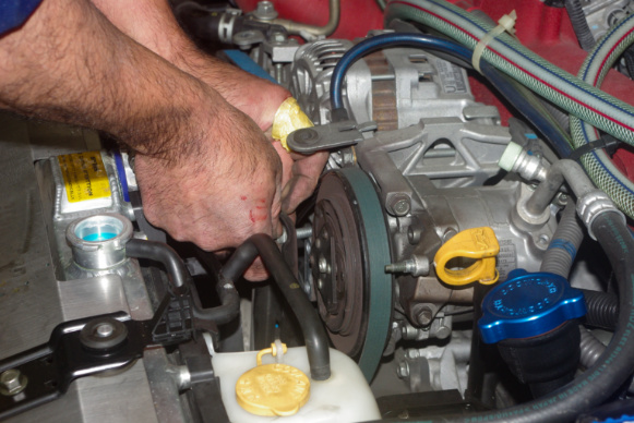 取り外していましたVリブベルトテンショナーを元に戻してボルトで固定します。