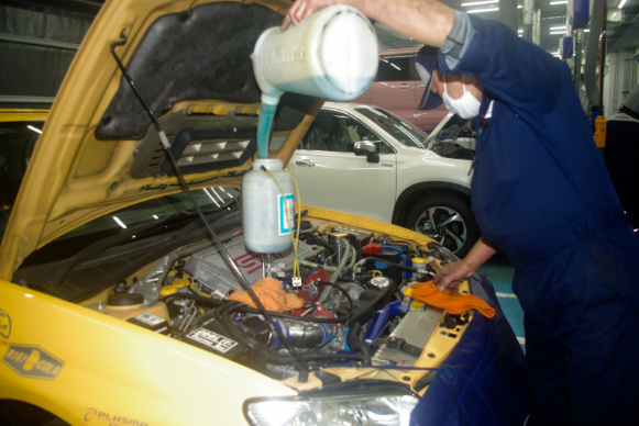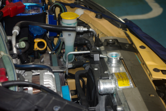 さて冷却ファンモーター交換作業が終わりましたので、排出しましたLLCの補充を行います。