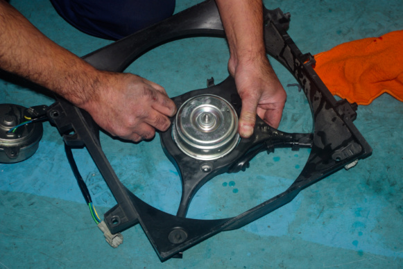 羽根を元通りモーターに固定しモーター交換は終了です。