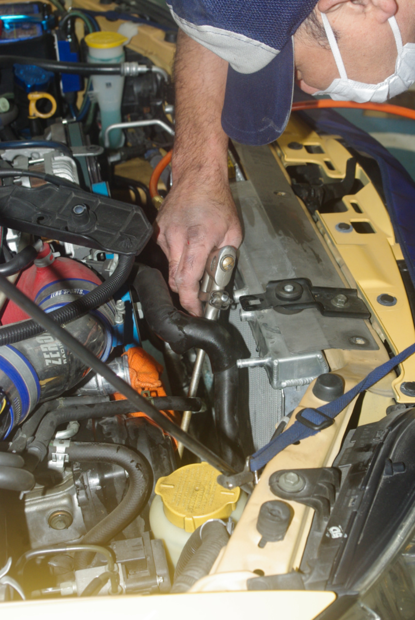 アッパーホースを取り外すためには冷却液を少し減らす必要があります。