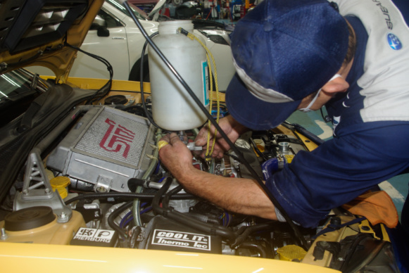 以前は必ずと言って良いほど、こういうピット作業は写真撮影を欠かさなかったのですが、最近ではあまりプロの仕事場をうろちょろするのはどうかと考えまして、出来るだけ控えるようにしていました。