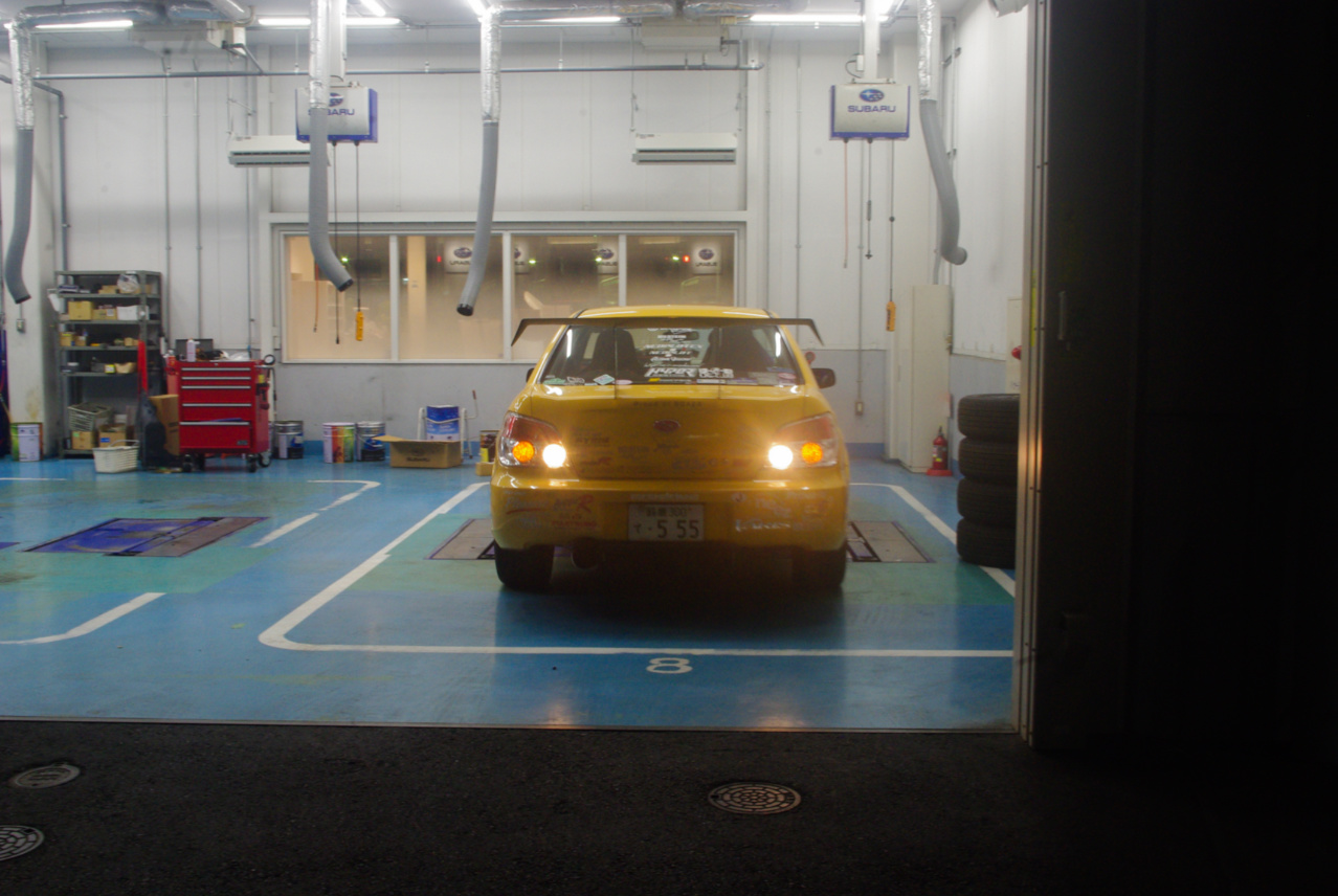 そこから表側に回ってみますと、丁度作業ピットに移動する直前の愛車を発見しました。