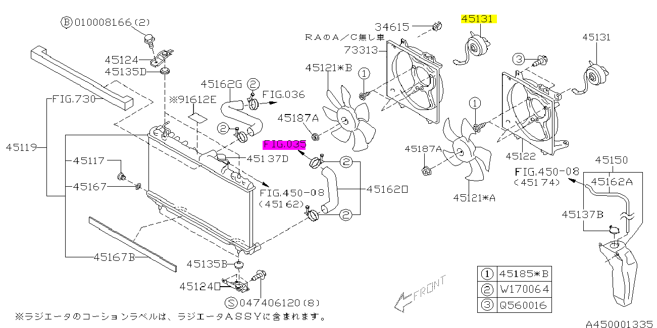 今回の作業で交換して頂きます、ラジエターファンモーターも含めた分解図です。