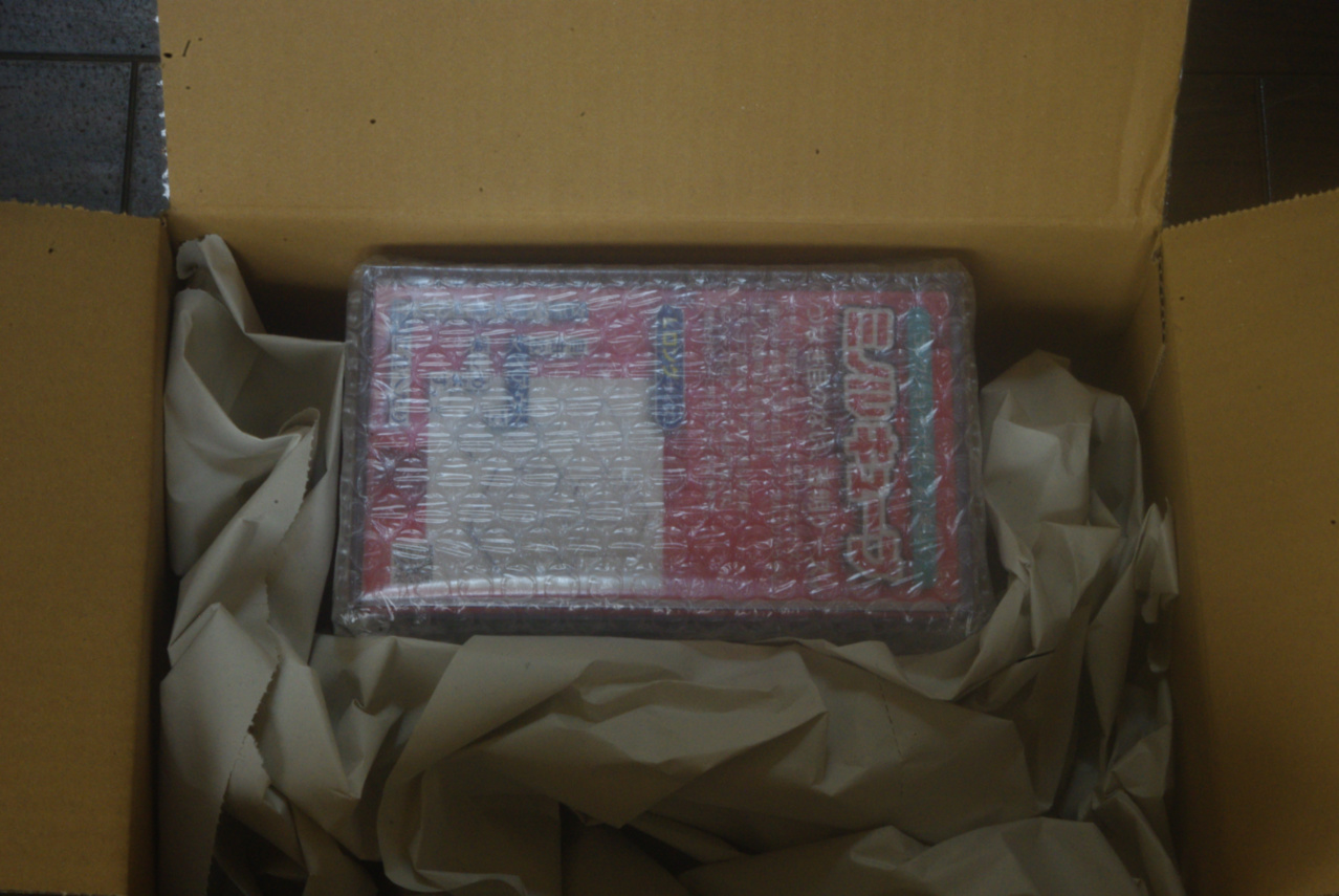 外側の包みを剥がしますと、如何にも頑丈そうなダンボールの構造物に囲まれた中身が出てきました。