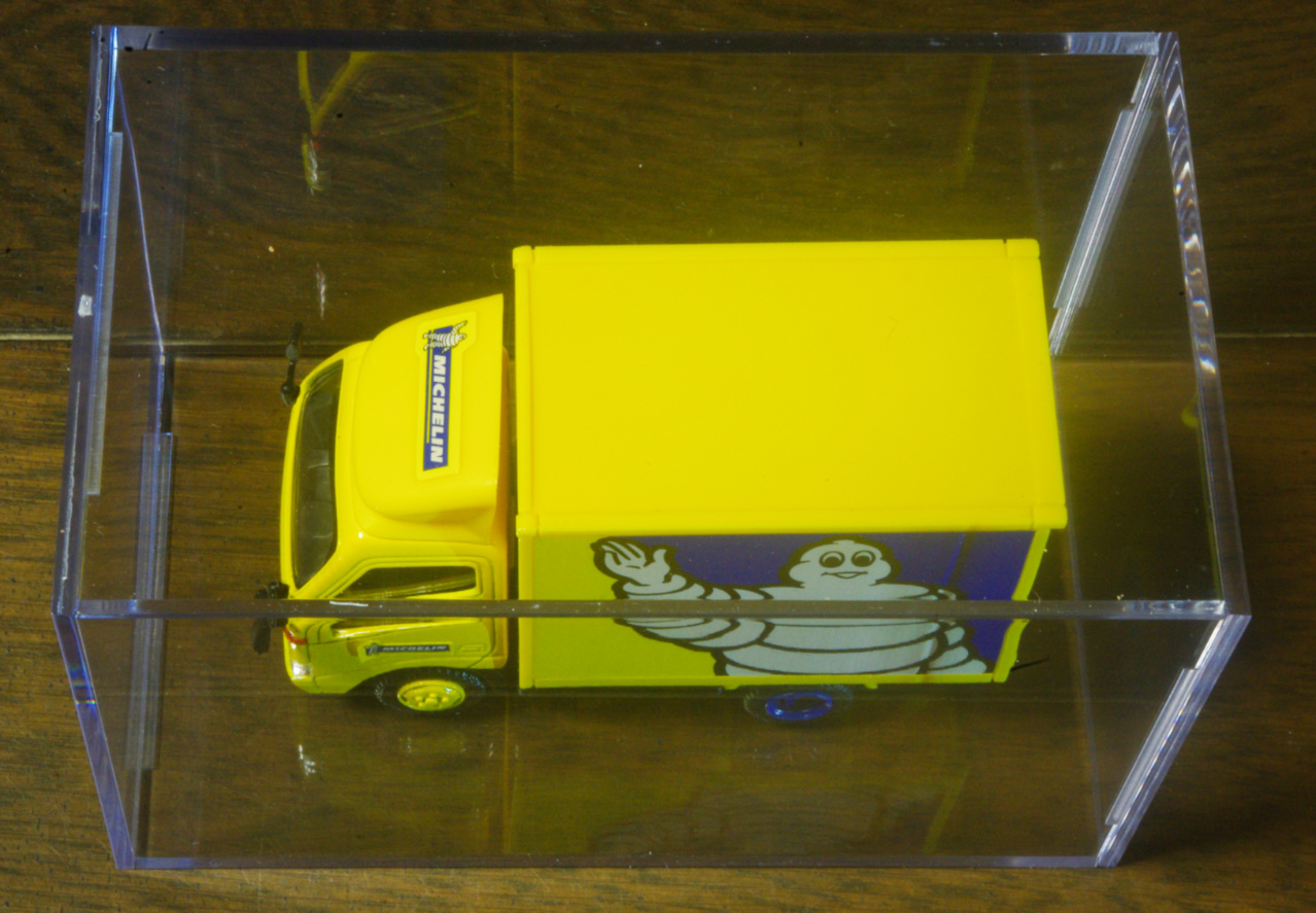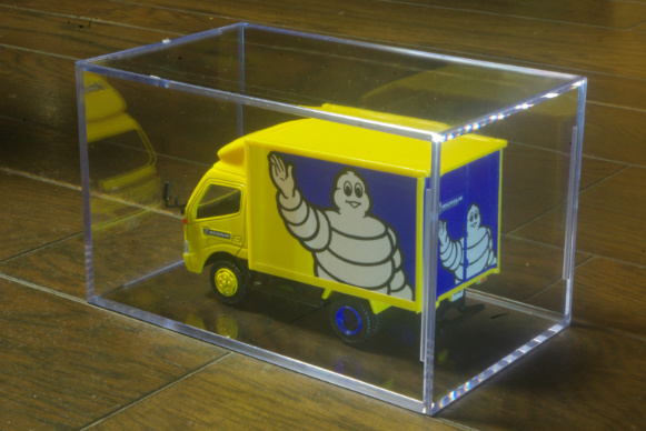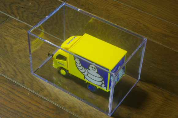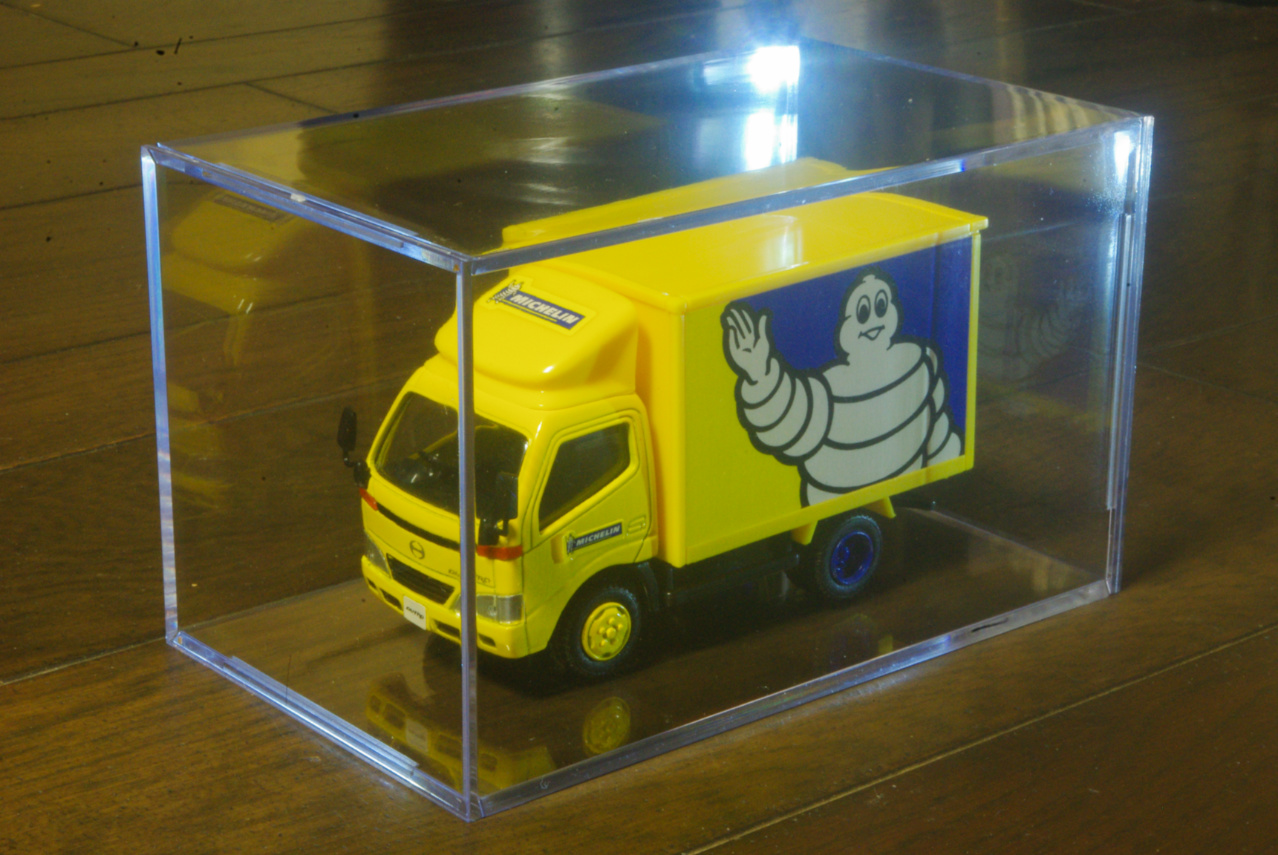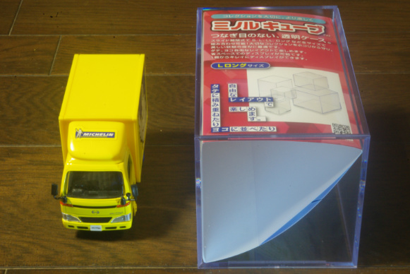 さてそれでは早速ミノルキューブ Lロングサイズに、MTECK 日野デュトロ ミシュランタイヤ配送車1/43を収めてみましょう。
