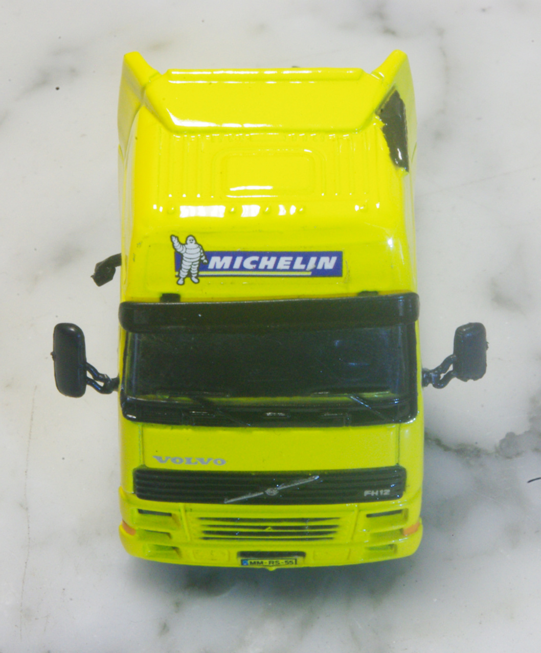 このVolvo FH12もPinterestの画像検索で同じMICHELINカラーの車両を探しましたが、残念ながらありませんでした。