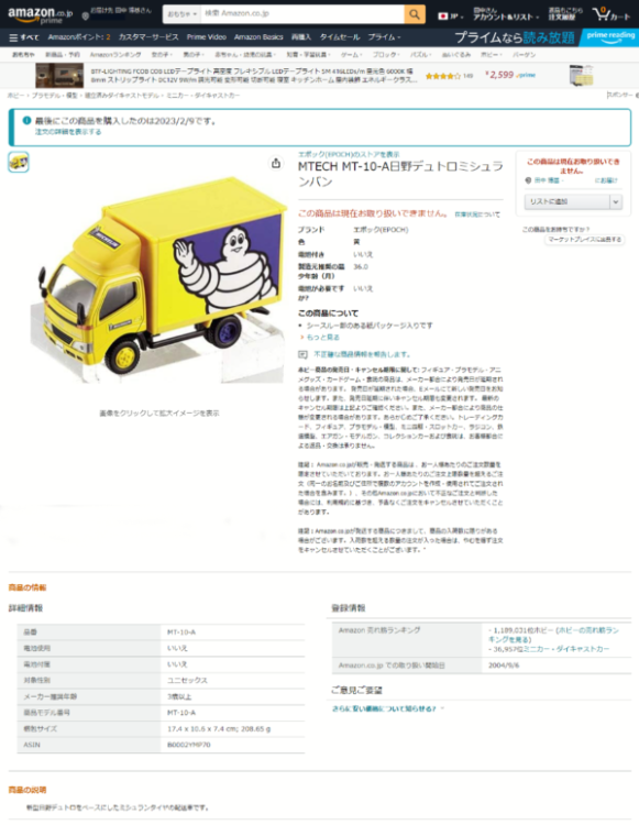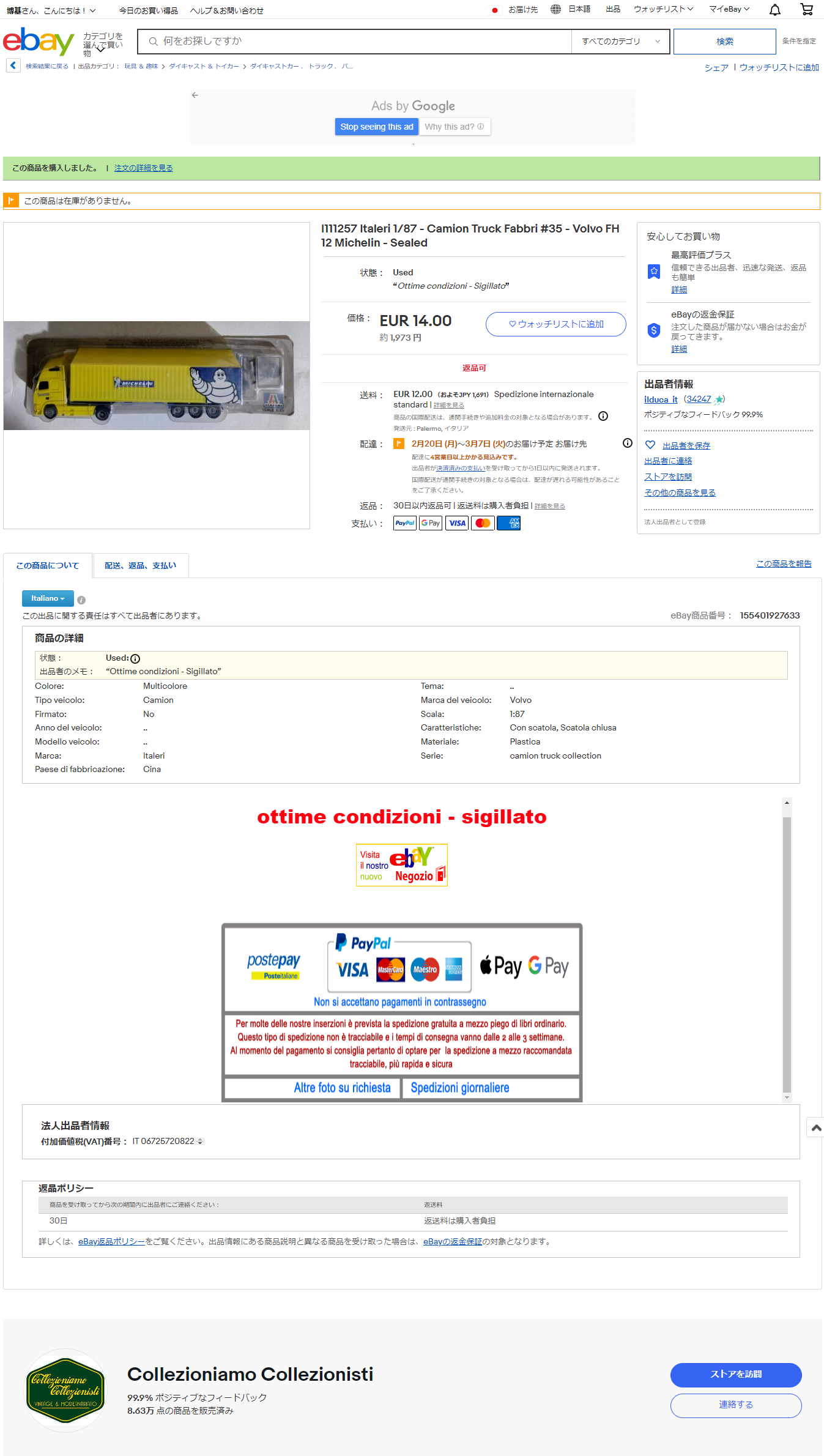 実はこのページの最初に紹介しました日野デュトロを注文する以前にこれと同じ商品をeBay USAで見つけていました。