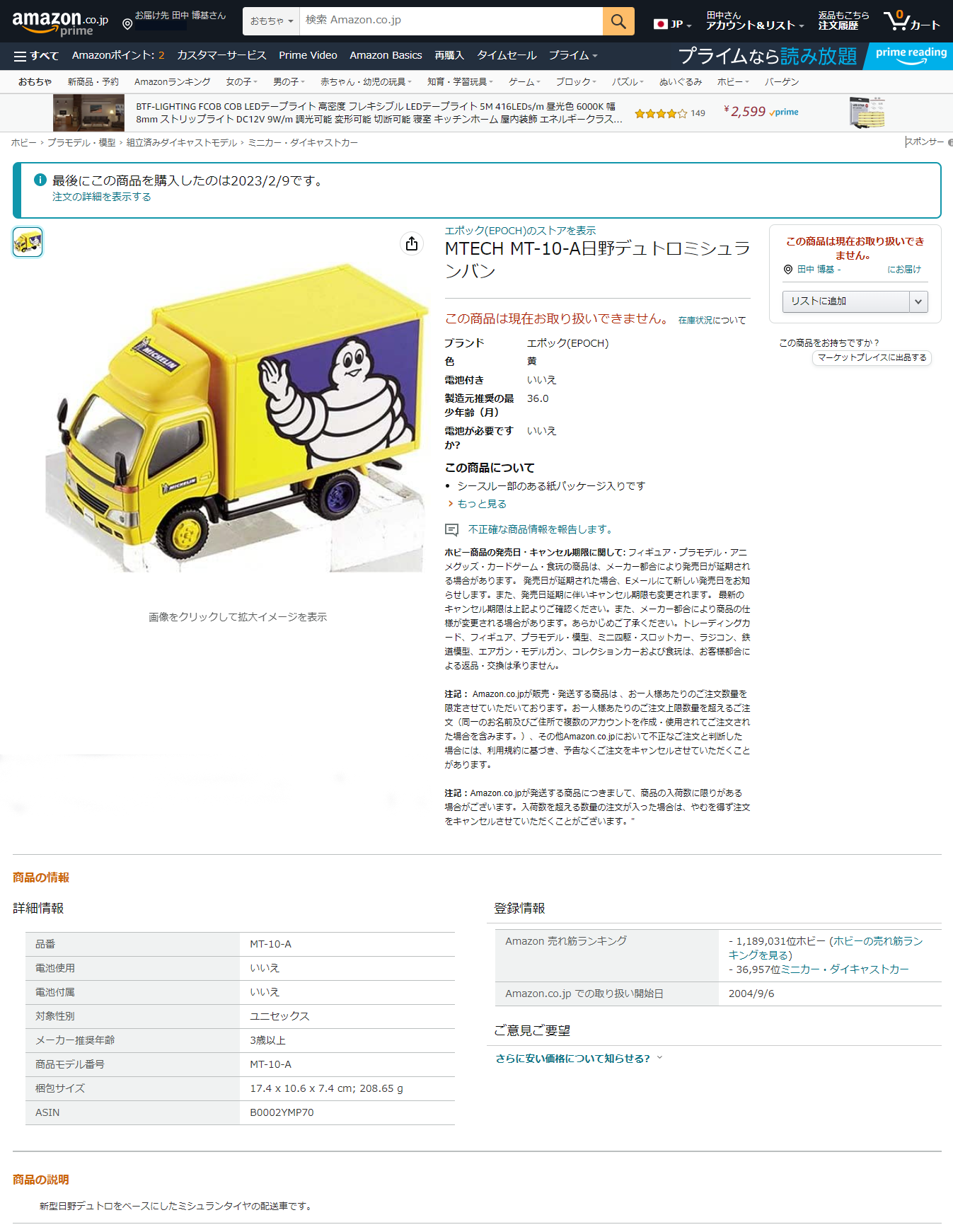 上のMTECK 日野デュトロ ミシュランタイヤ配送車 1/43を注文した9日同日にこれもAmazonで注文しまして、この日荷物が届きました。