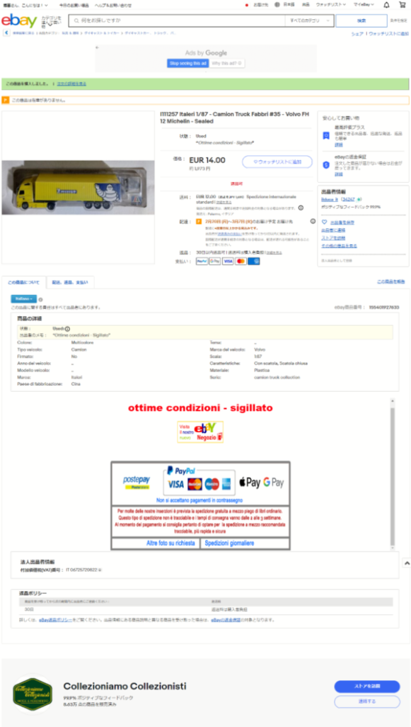 実際はこの少し前からeBay USA で同じものが出品されているのを確認していましたが、このAmazon より倍くらいの価格設定でしたので諦めました。