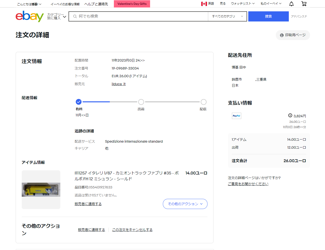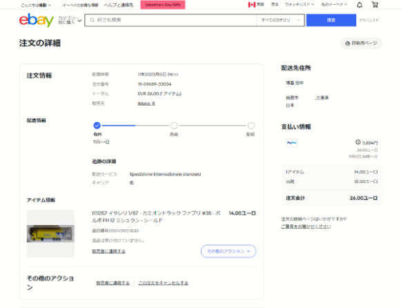 それから今回の商品のトラッキングですが、商品が到着する最後まで機能しませんでした。